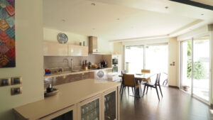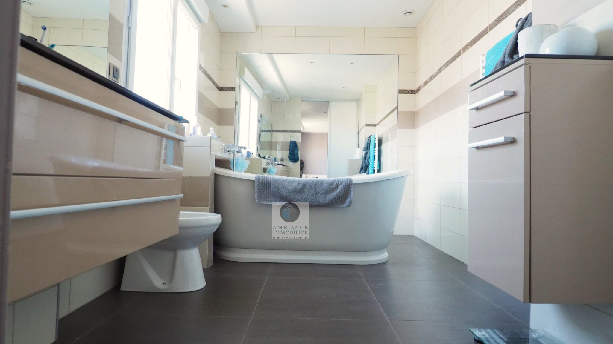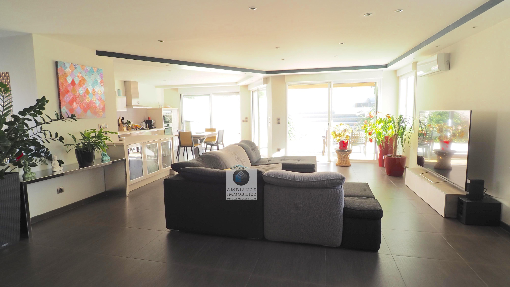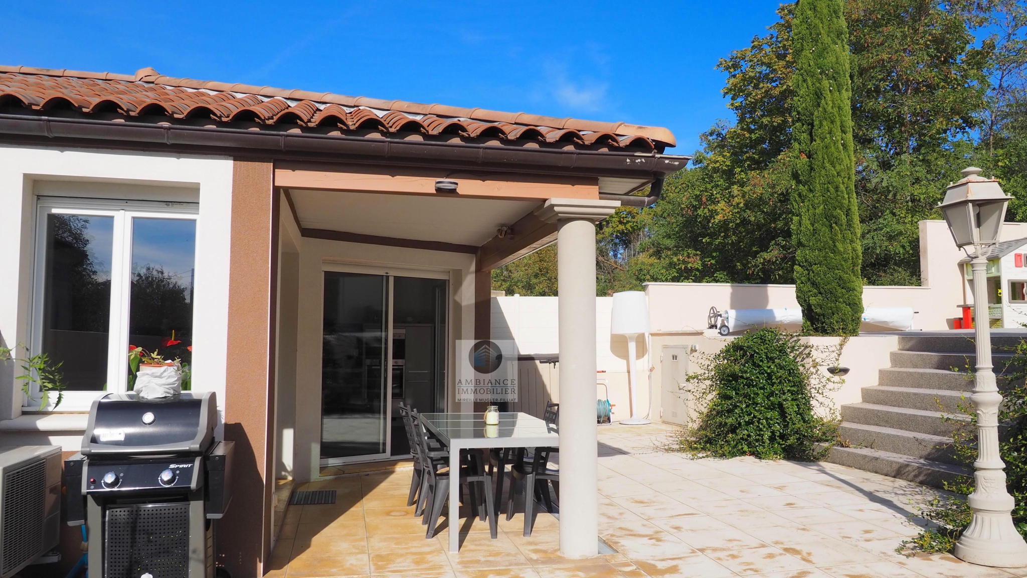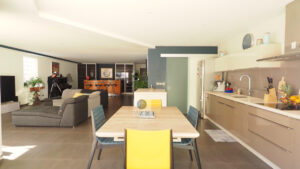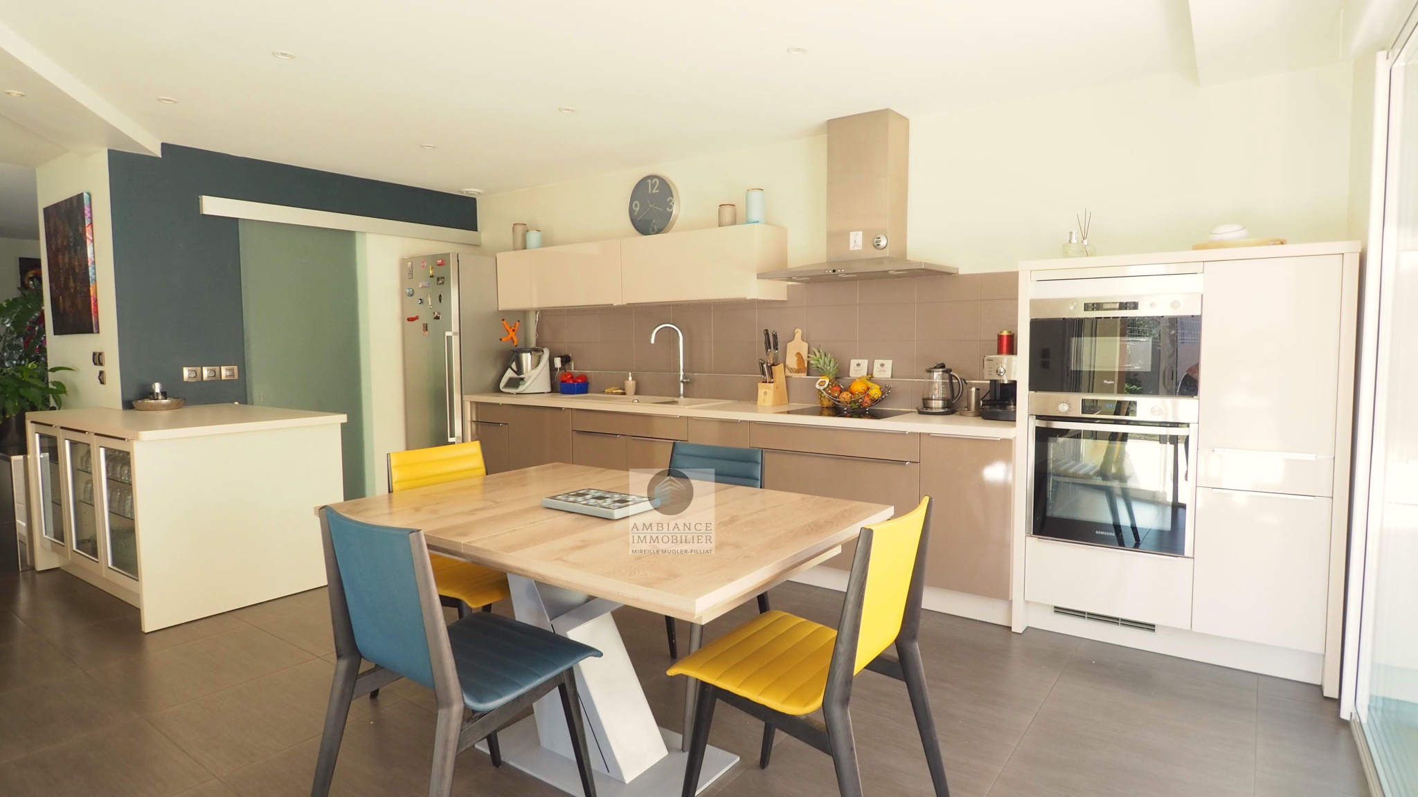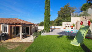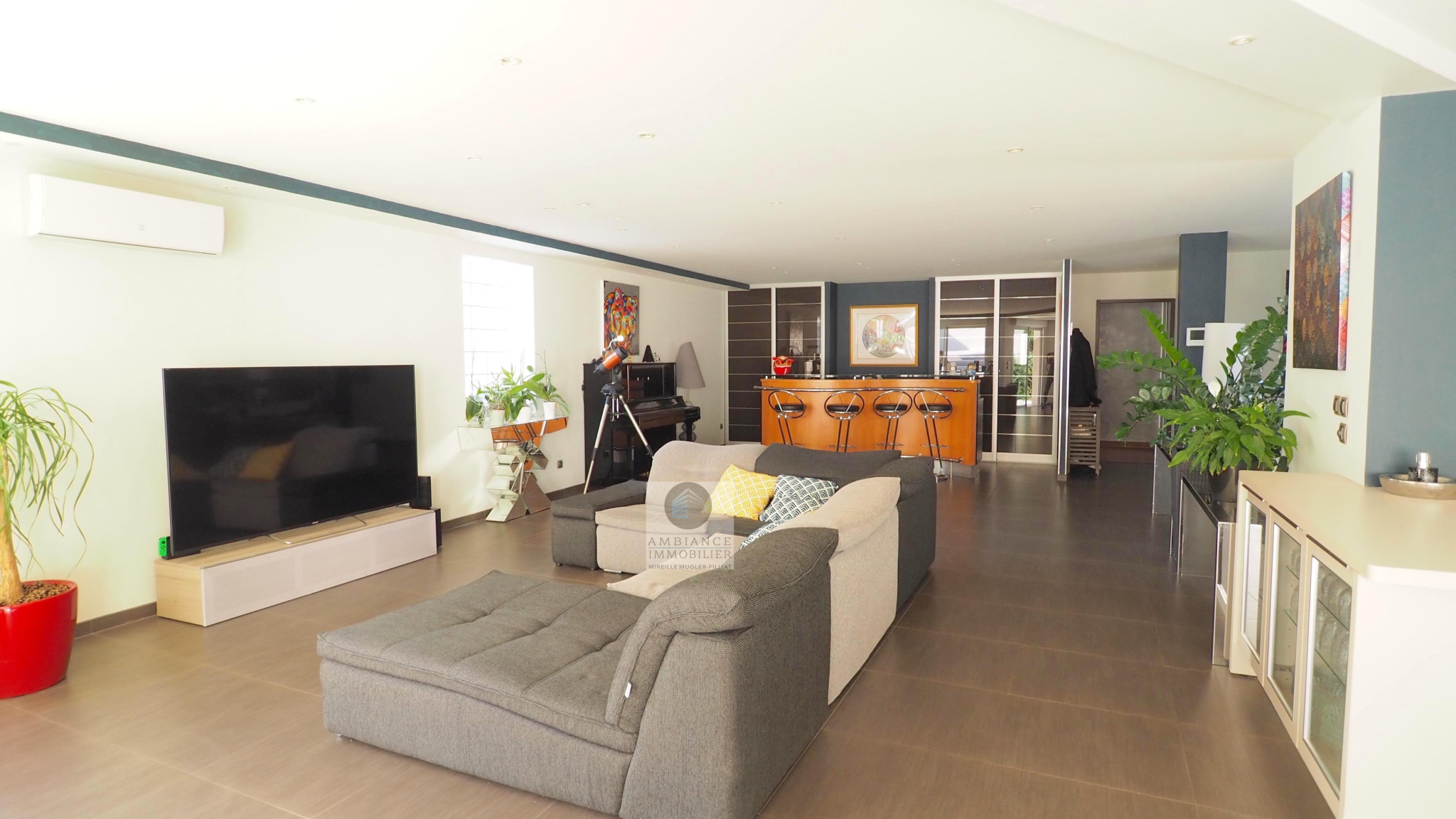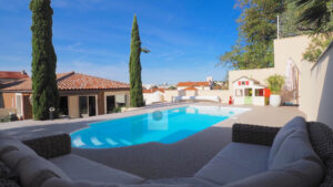 VALENCE, en exclusivité, dans quartier recherché, le calme, la luminosité, une conception atypique et de beaux volumes pour cette maison d’architecte de 221m2. Salon-séjour, cuisine intégrée de 70m2 avec de grandes baies vitrées offrant une belle perspective sur les terrasses et le jardin paysager, buanderie, 5 chambres dont 1 suite parentale de 33m2 avec dressing, salle de bains avec baignoire et vasque et 1 suite enfant de 20m2 avec dressing, salle d’eau avec douche et vasque, 1 salle d’eau, un espace bureau/salle de jeux. Chauffage par pompe à chaleur : plancher chauffant/rafraîchissant + climatisation dans la pièce de vie, huisseries en alu et pvc, volets électriques. Garage de 41m2 avec 2 portails motorisés, 1 cour fermée avec parking 1 VL. Un bel espace détente autour d’une piscine de 6m x 3,5m et un pool-house de 25m2 avec sanitaires. Construction de 2011 sur une parcelle de 503m2. DPE : B 81 – GES : A 3