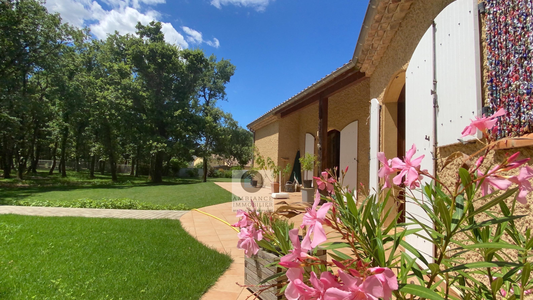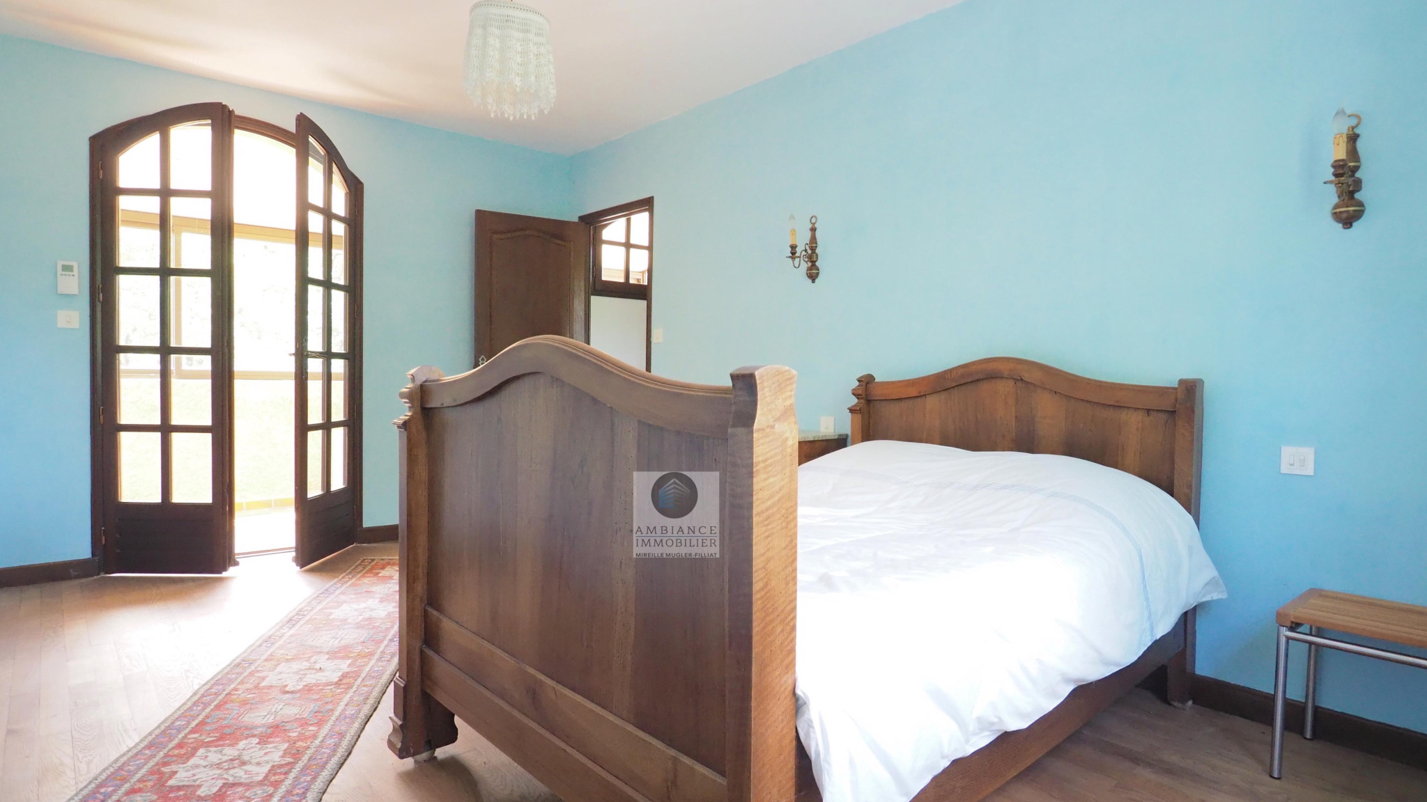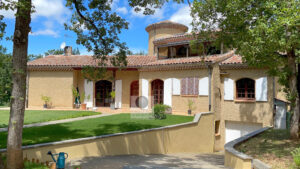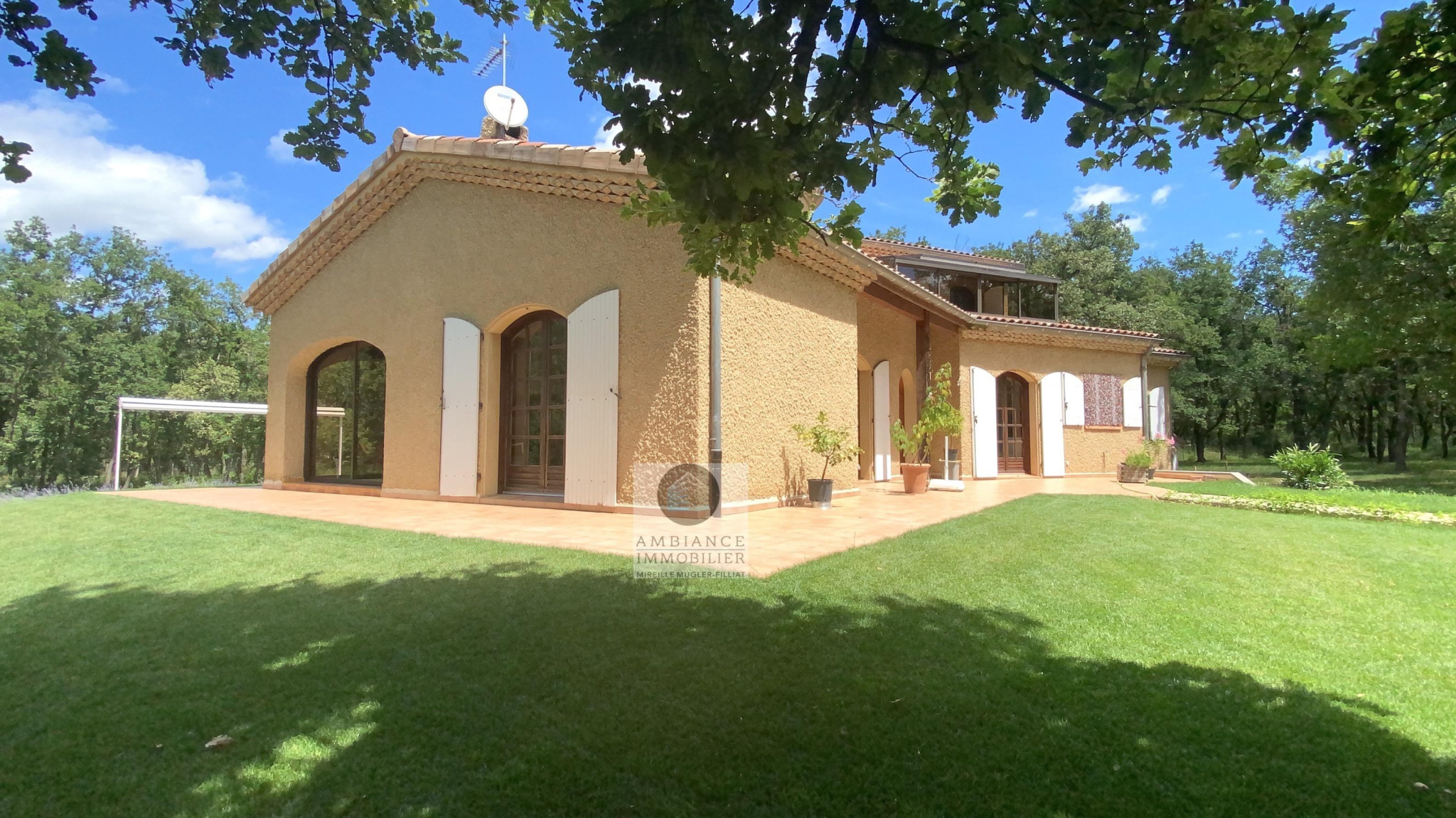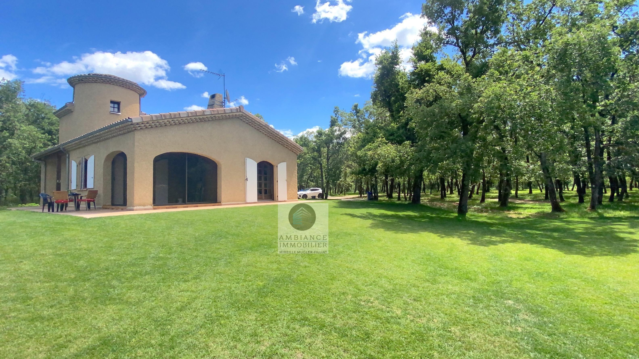 CHABEUIL en exclusivité, le calme, une belle exposition, une jolie vue sur le parc, un cadre enchanteur, une conception originale et de beaux volumes pour cette maison d’architecte de 160m2. Une pièce de vie de 46m2 avec salon-séjour de 31m2, salon TV de 15m2 avec cheminée à foyer fermé, cuisine dînatoire de 21m2, salle d’eau, 4 chambres dont 1 suite parentale de 24m2 avec salle de bains et terrasse avec véranda. Chauffage électrique, panneaux solaires pour la production d’eau chaude. Un sous-sol de 108m2 : garage de 92m2, cave et local technique. Parcelle de terrain de 1ha dont une grande partie boisée de chênes et environ 2 500m2 de pelouse, un espace détente autour d’une piscine de 9m x 4m sécurisée par un volet immergé, de belles ambiances de terrasses sud/est et ouest.