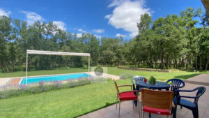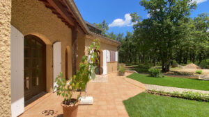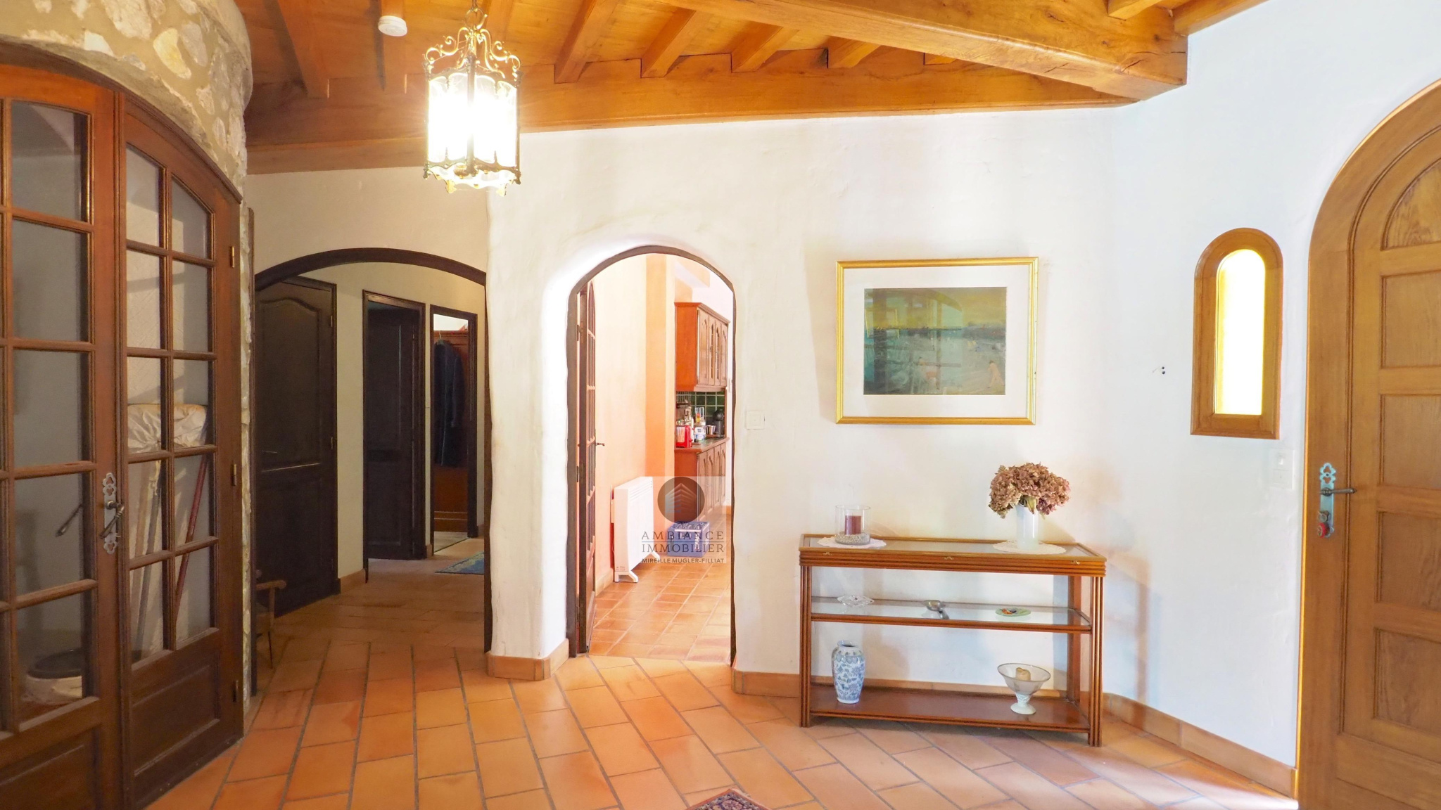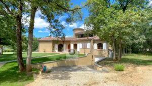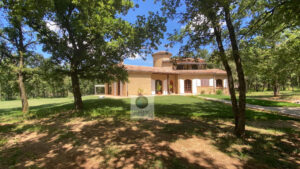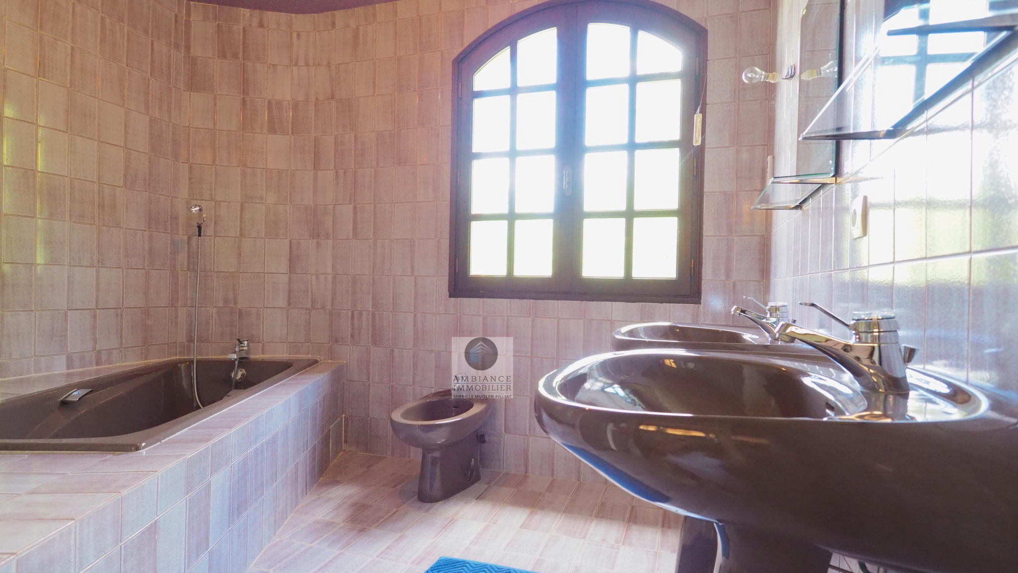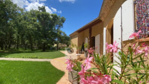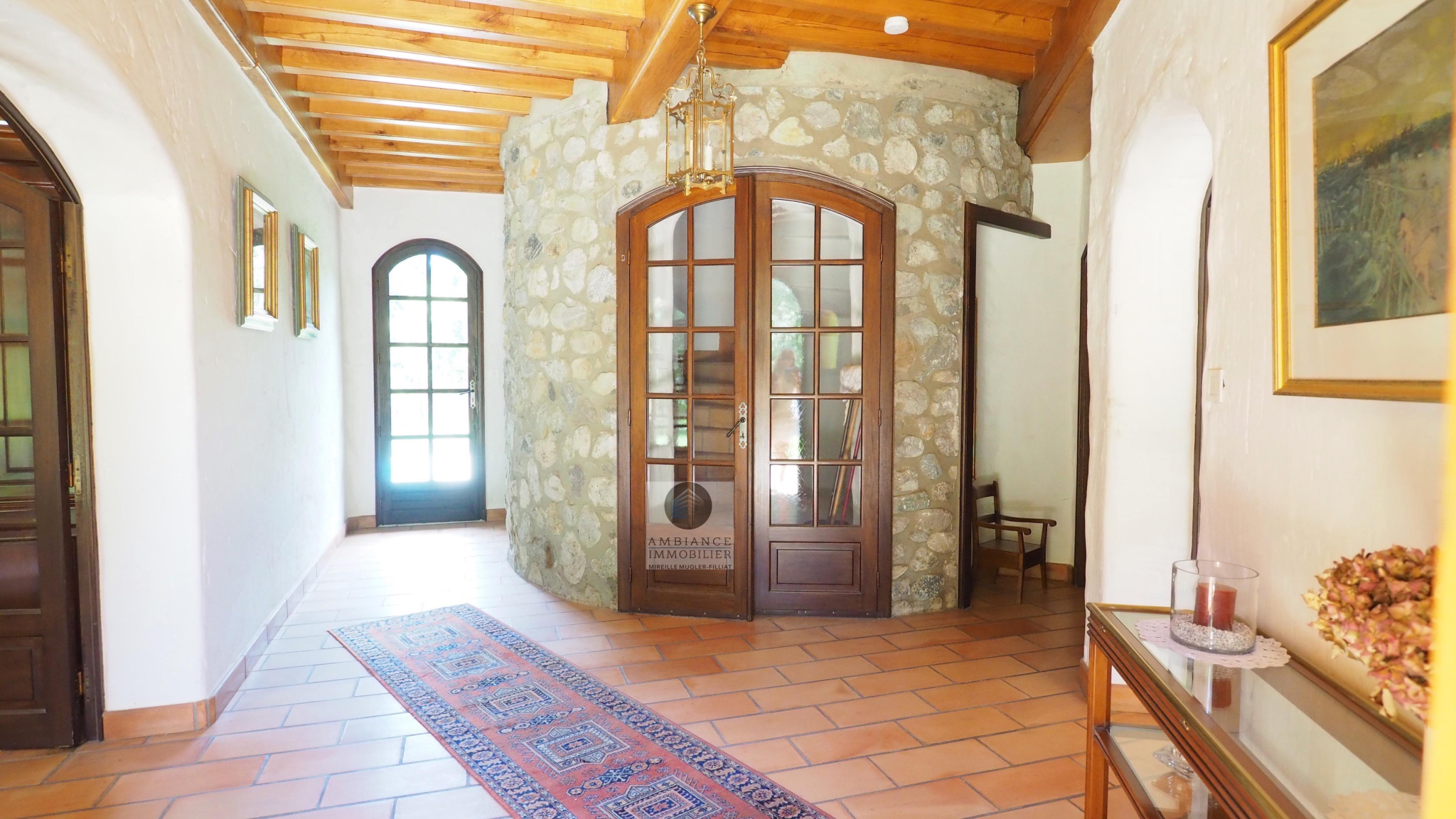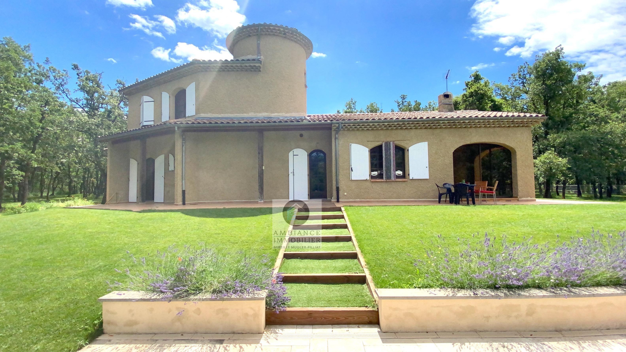 CHABEUIL en exclusivité, le calme, une belle exposition, une jolie vue sur le parc, un cadre enchanteur, une conception originale et de beaux volumes pour cette maison d’architecte de 160m2. Une pièce de vie de 46m2 avec salon-séjour de 31m2, salon TV de 15m2 avec cheminée à foyer fermé, cuisine dînatoire de 21m2, salle d’eau, 4 chambres dont 1 suite parentale de 24m2 avec salle de bains et terrasse avec véranda. Chauffage électrique, panneaux solaires pour la production d’eau chaude. Un sous-sol de 108m2 : garage de 92m2, cave et local technique. Parcelle de terrain de 1ha dont une grande partie boisée de chênes et environ 2 500m2 de pelouse, un espace détente autour d’une piscine de 9m x 4m sécurisée par un volet immergé, de belles ambiances de terrasses sud/est et ouest.