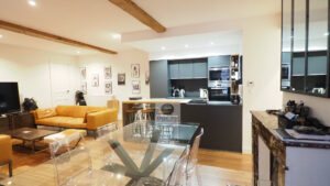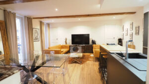VALENCE Centre historique, le calme, la luminosité, de beaux volumes pour ce F3/F4 de 79m2 au 1er étage d’une petite copropriété de 2 appartements. Une rénovation totale en 2017 dans un esprit contemporain et chaleureux tout en préservant le caractère authentique de cet appartement : cheminées, poutres. Une pièce de vie de 39m2 : cuisine intégrée ouverte sur un séjour-salon avec 3 grandes ouvertures, 2 chambres, salle de bains avec baignoire, douche à l’italienne, vasque et wc, une entrée spacieuse avec 2 placards/dressing. Huisseries pvc – chaudière au gaz.