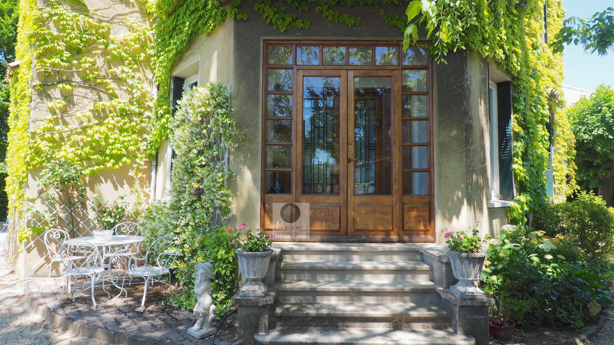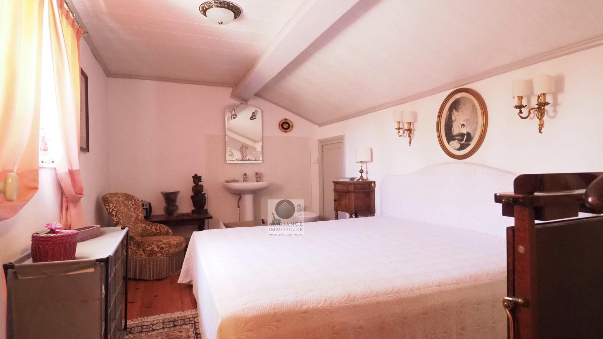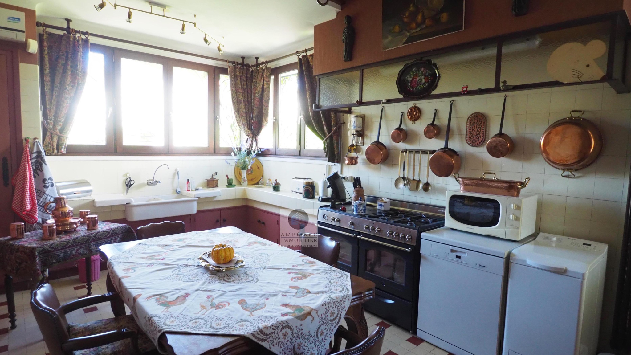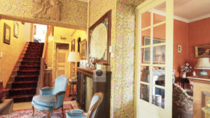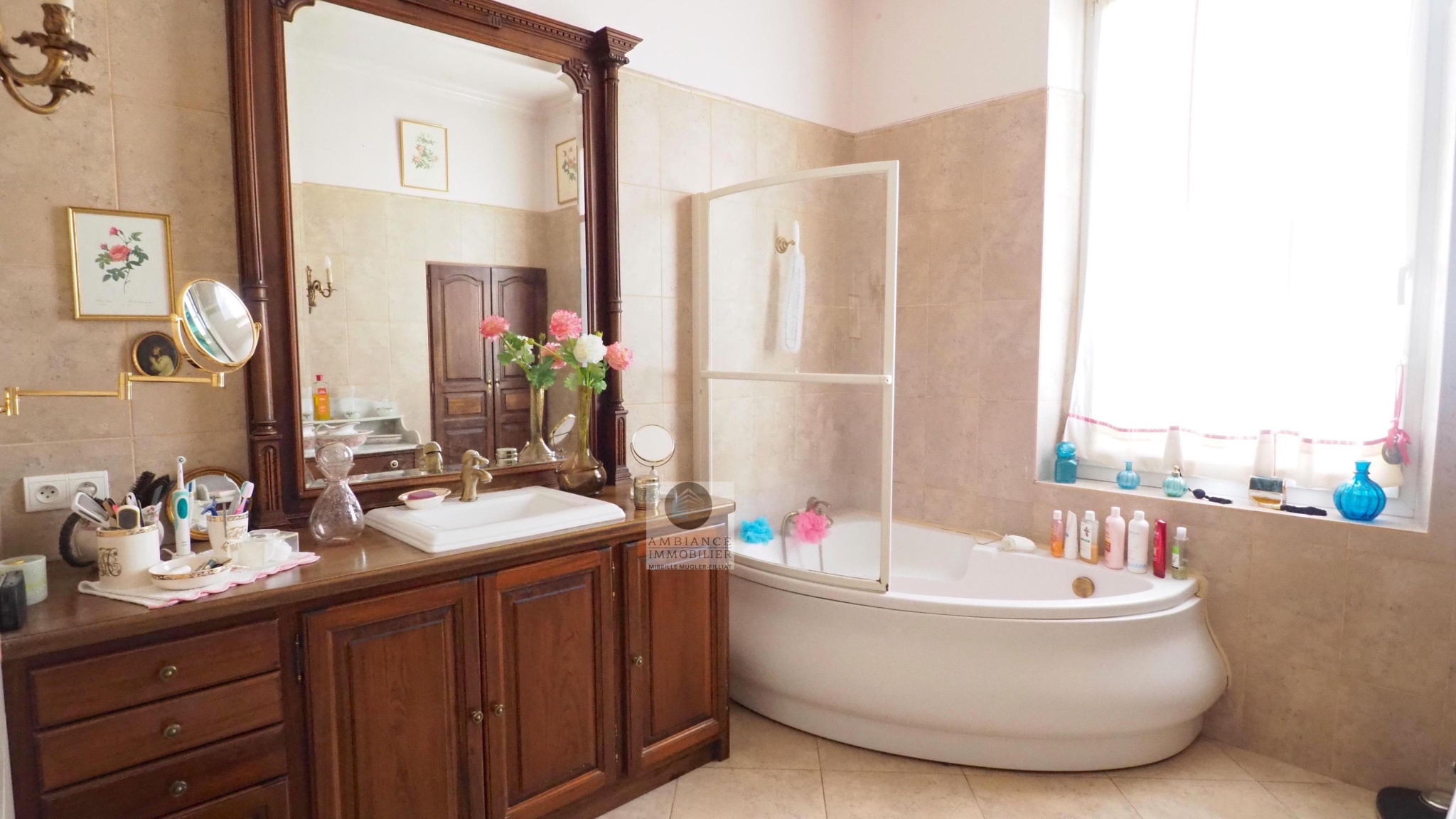 GUILHERAND-GRANGES en exclusivité, centre-ville, la luminosité, le charme de l’ancien avec de beaux parquets, des cheminées, de beaux volumes, une architecture originale, le caractère authentique préservé pour cette maison de caractère de 1890 de 222m2. Cuisine dînatoire de 22m2 avec accès au jardin, séjour, 2 salons de réception, de belles portes vitrées offrant une belle perspective sur les 50 m2 de pièces de vie. Au 1er étage un salon TV/bibliothèque de 25m2 avec un bow-window, 1 bureau, 5 chambres dont 1 chambre d’amis avec un coin toilette, salle de bains avec baignoire et vasque. Grenier, petit garage/atelier et 50m2 de caves. Chauffage par pompe à chaleur de 2017, climatisation, huisseries pvc. Alarme. Puits. Parcelle de 790m2 avec jardin paysager et parkings.