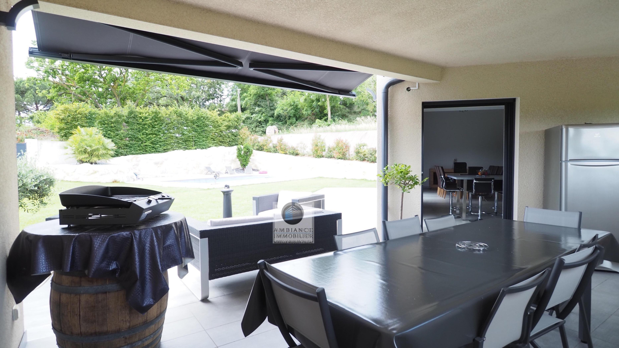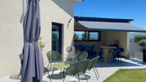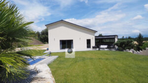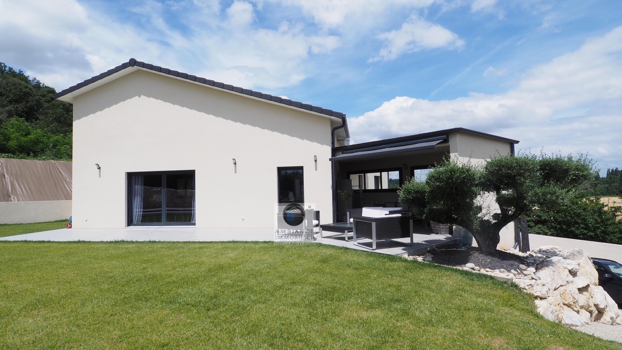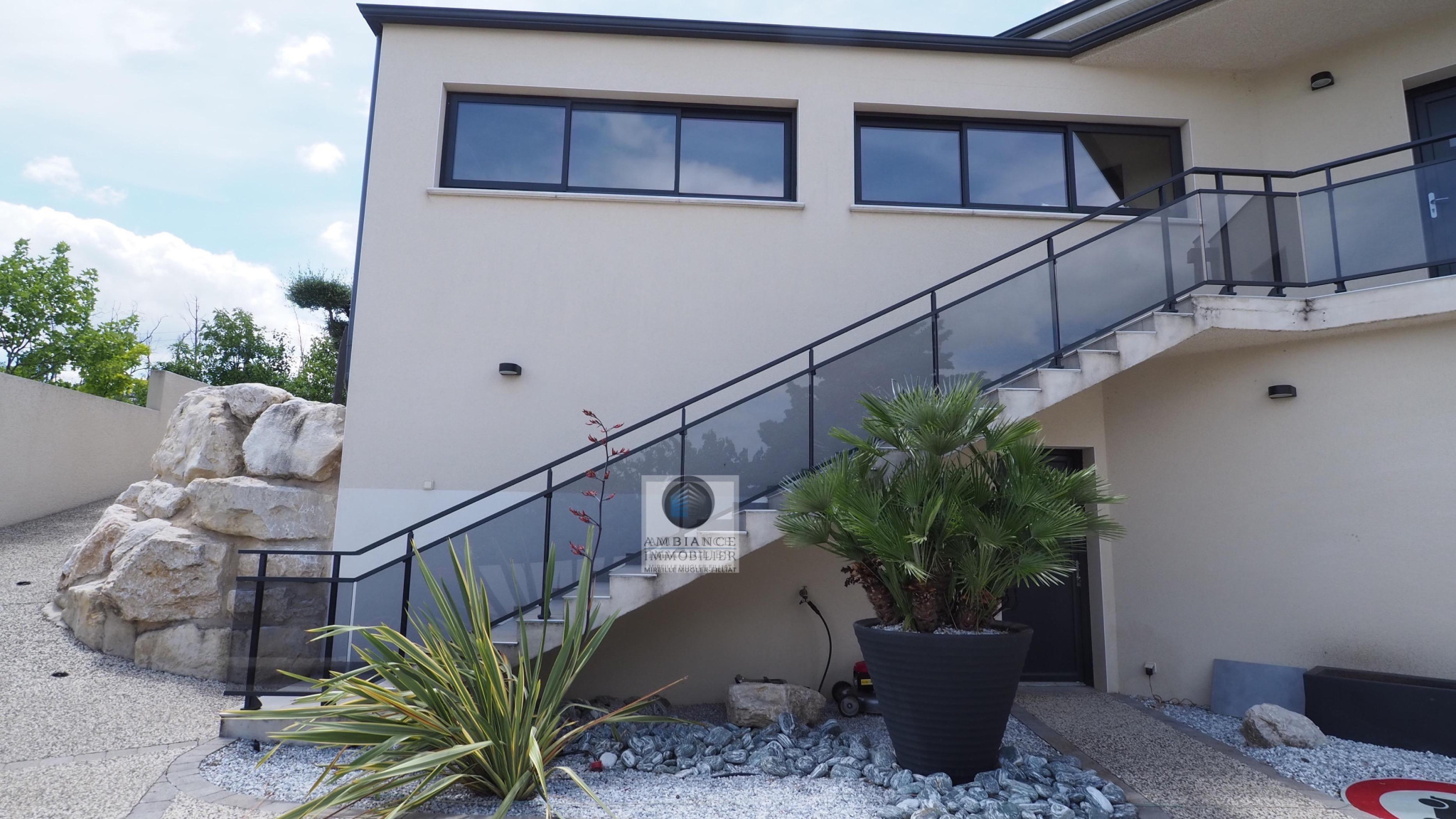 BEAUVALLON en co-exclusivité, une superbe vue, le calme, de beaux volumes, une belle exposition, des prestations de qualité pour cette maison d’architecte de 2015 de 184m2. Une pièce de vie de 82m2 : salon-séjour de 67m2, cuisine intégrée de 15m2 avec accès à une terrasse couverte de 24m2 offrant une belle perspective sur le Vercors et le jardin, 4 chambres dont un espace enfants/amis avec 3 chambres et une salle de bains : baignoire, douche et vasque et une suite parentale climatisée de 40m2 avec dressing et salle d’eau, accès à une terrasse privative de 60m2. Buanderie, sous-sol de 100m2 et garage de 60m2 avec 2 portails électriques. Chauffage par le sol par pompe à chaleur : plancher chauffant/rafraîchissant, huisseries en alu et pvc avec fermeture centralisée. Parcelle de 1 229m2 : un jardin paysager avec une piscine 9m x 4m, terrain de boules, un espace parking de 190m2 en béton désactivé.