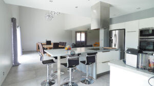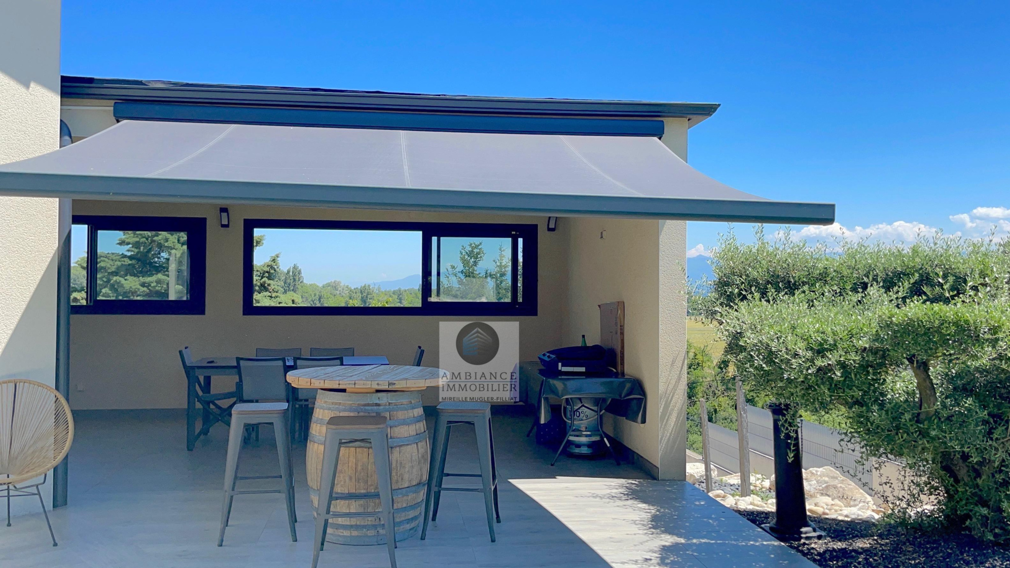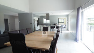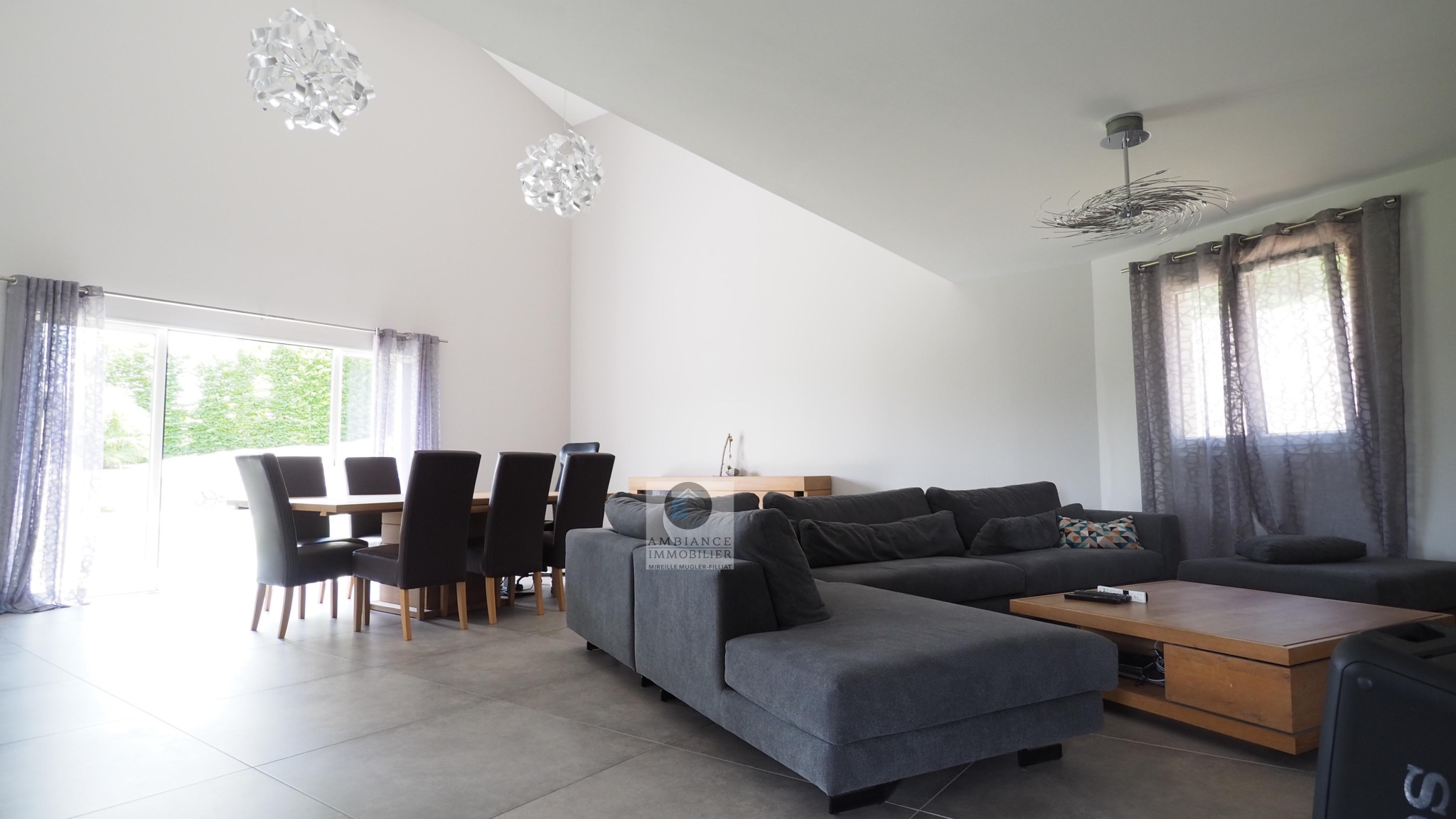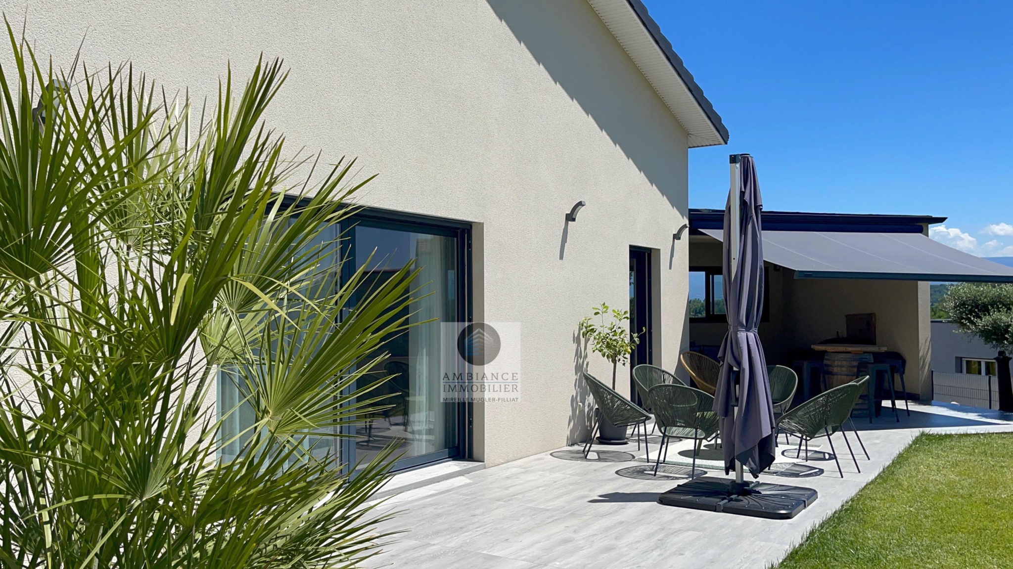 BEAUVALLON en co-exclusivité, une superbe vue, le calme, de beaux volumes, une belle exposition, des prestations de qualité pour cette maison d’architecte de 2015 de 184m2. Une pièce de vie de 82m2 : salon-séjour de 67m2, cuisine intégrée de 15m2 avec accès à une terrasse couverte de 24m2 offrant une belle perspective sur le Vercors et le jardin, 4 chambres dont un espace enfants/amis avec 3 chambres et une salle de bains : baignoire, douche et vasque et une suite parentale climatisée de 40m2 avec dressing et salle d’eau, accès à une terrasse privative de 60m2. Buanderie, sous-sol de 100m2 et garage de 60m2 avec 2 portails électriques. Chauffage par le sol par pompe à chaleur : plancher chauffant/rafraîchissant, huisseries en alu et pvc avec fermeture centralisée. Parcelle de 1 229m2 : un jardin paysager avec une piscine 9m x 4m, terrain de boules, un espace parking de 190m2 en béton désactivé.