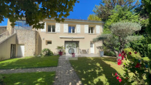 ETOILE SUR RHONE proche du centre du village, en exclusivité, le calme, de beaux volumes, la luminosité, une conception atypique pour cette maison de 268m2 rénovée en 2012 dans un esprit contemporain et chaleureux. Salon-séjour de 40m2 avec cheminée à foyer fermé, poutres apparentes, cuisine intégrée de 25m2 avec un espace dînatoire et accès à une terrasse/véranda de 20m2, buanderie, salle d’eau : 2 vasques et douche, 5 chambres dont 1 suite parentale de 20m2 avec placard/dressing et salle de bains : vasque, baignoire, wc. Un appartement F2/F3 indépendant de 97m2 : salon-séjour-cuisine intégrée de 55m2, cellier, chambre avec 2 dressings, salle de bains, idéal pour recevoir la Famille ou revenus locatifs. Chauffage électrique – huisseries en alu et pvc. Parcelle de 1258m2 avec un jardin joliment paysager, un espace détente autour d’une piscine hors-sol de 6m x 3m, parkings.