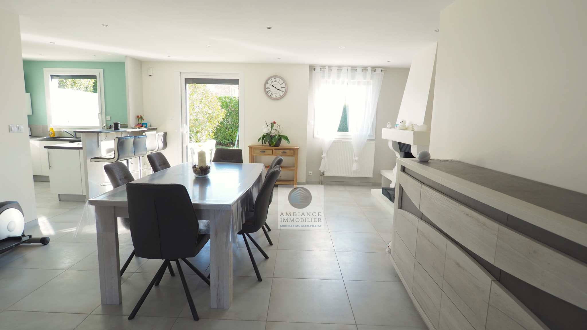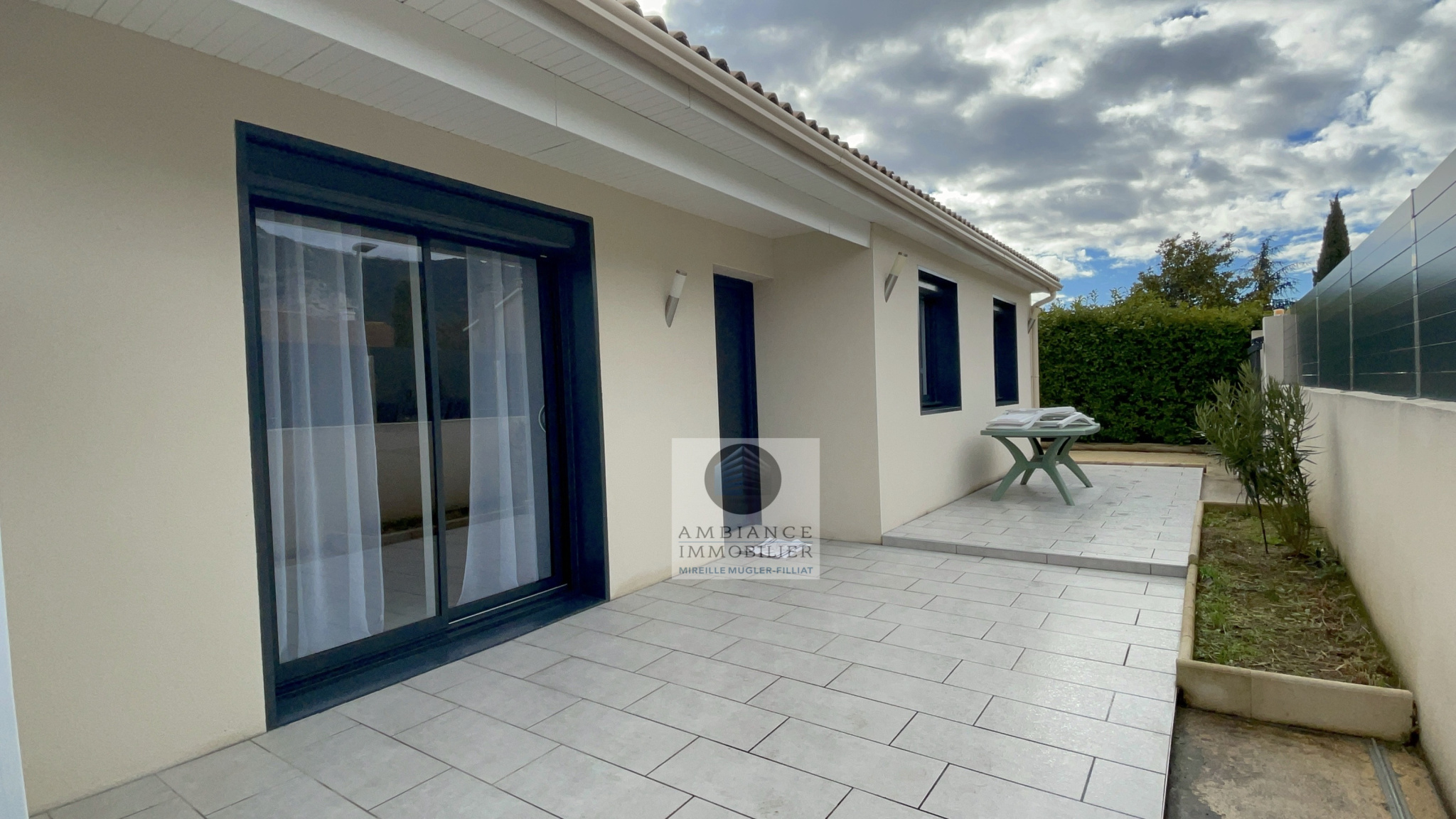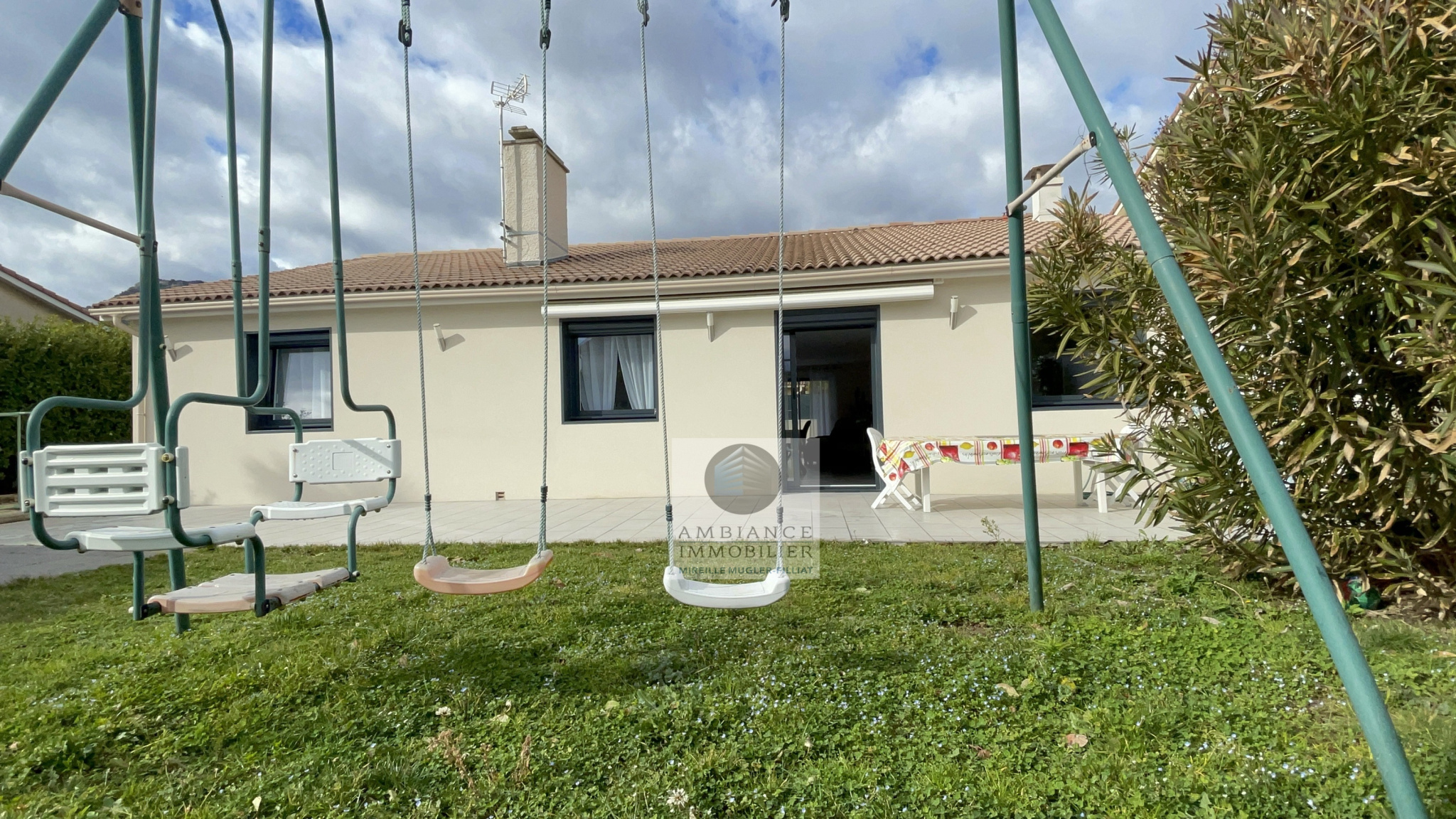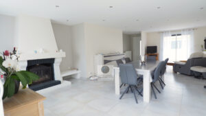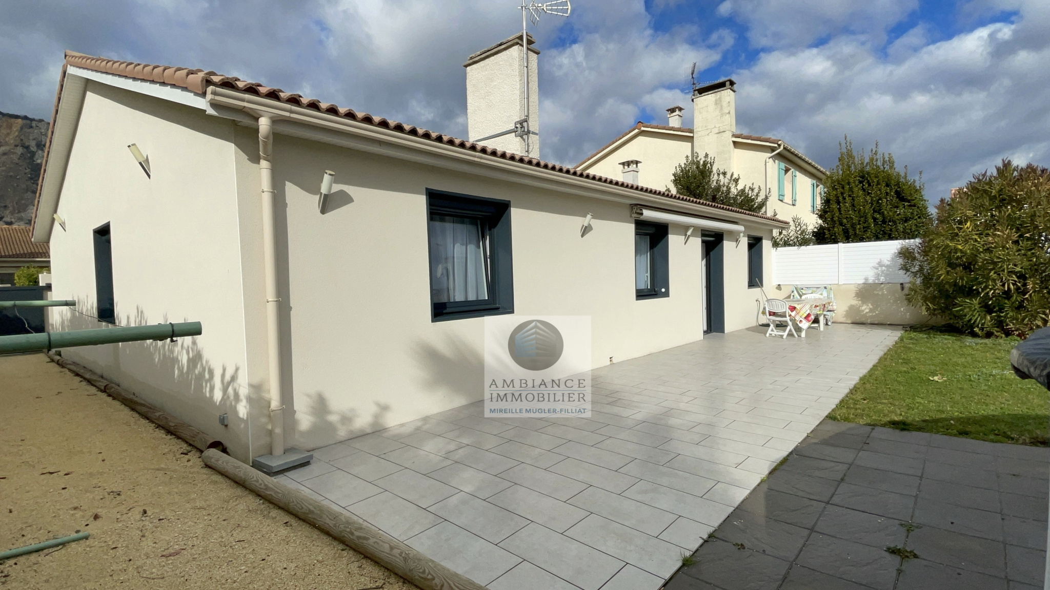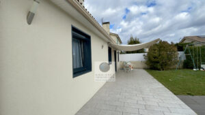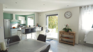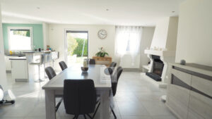 GUILHERAND-GRANGES, le centre-ville et le calme, la luminosité, un esprit contemporain, de belles prestations, une conception agréable et fonctionnelle pour cette maison de plain-pied de 105m2. Une pièce vie de 50m2 : séjour-salon avec cheminée accès à une terrasse carrelée avec store, cuisine intégrée, buanderie, un bureau, un espace nuit séparé : salle de bains avec vasque, baignoire et wc, 3 chambres dont une suite parentale de 17m2 : chambre avec 2 placards, salle d’eau avec douche, vasque et wc. Chauffage au gaz de ville – huisseries pvc et alu. Garage avec porte sectionnelle. Parcelle de 560m2 avec un jardin paysager, un chalet en bois, un jeu de boules, parkings. Un beau projet pour de jeunes retraités.
