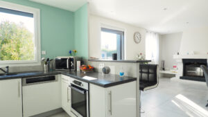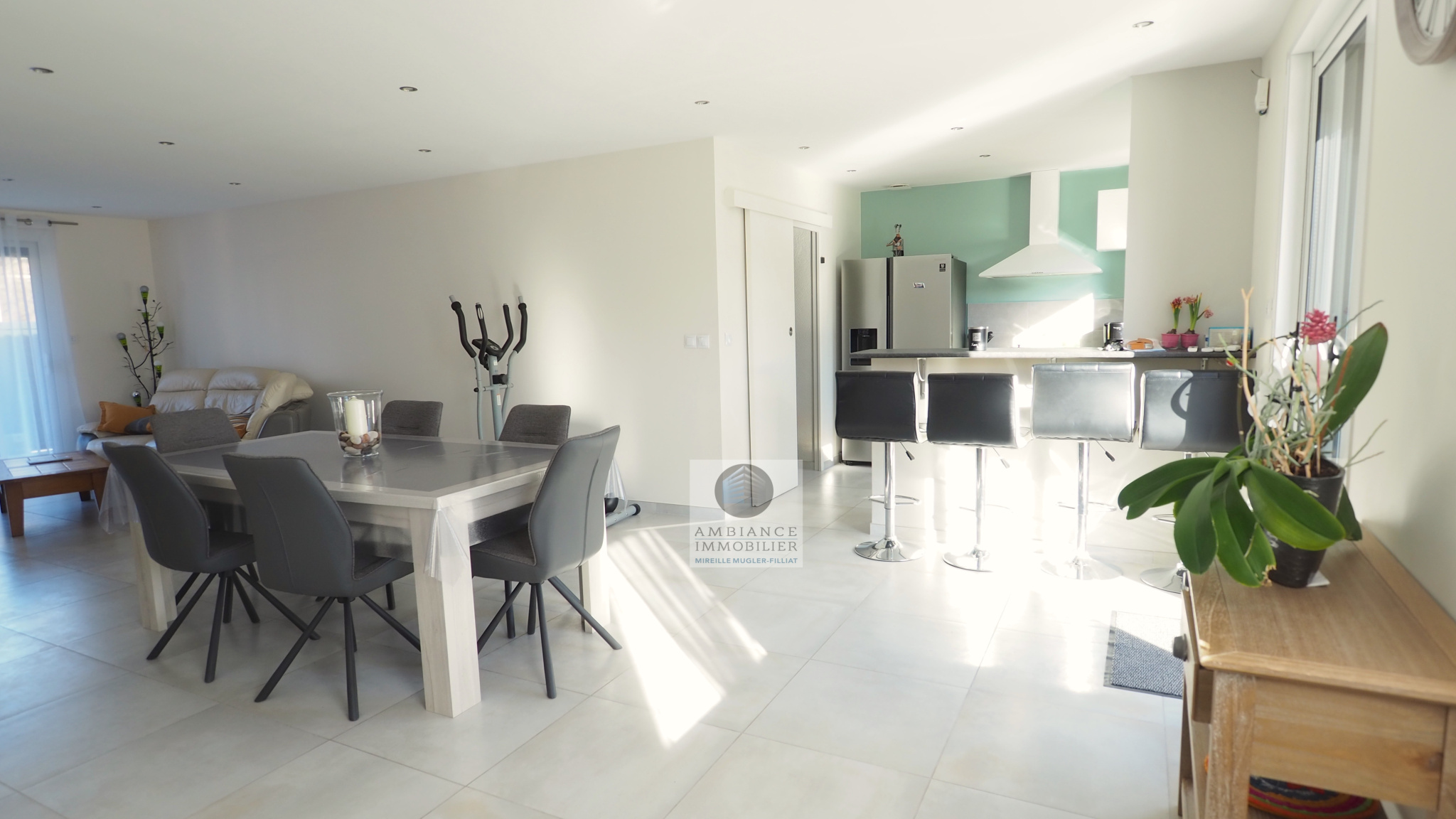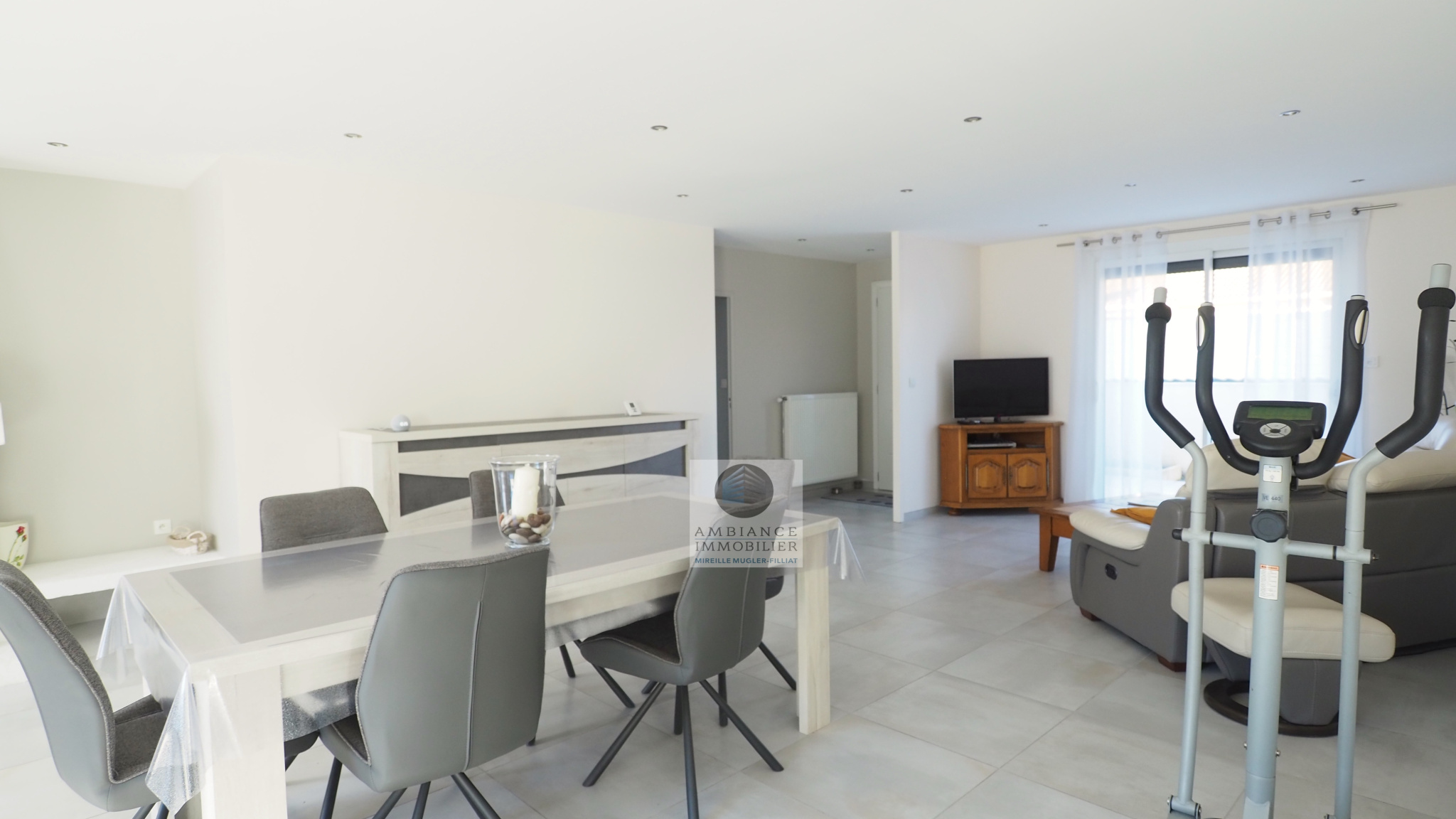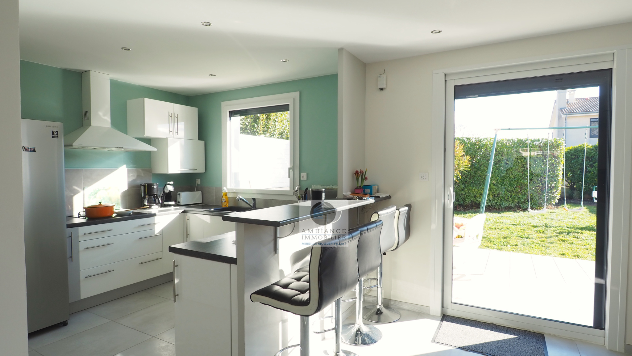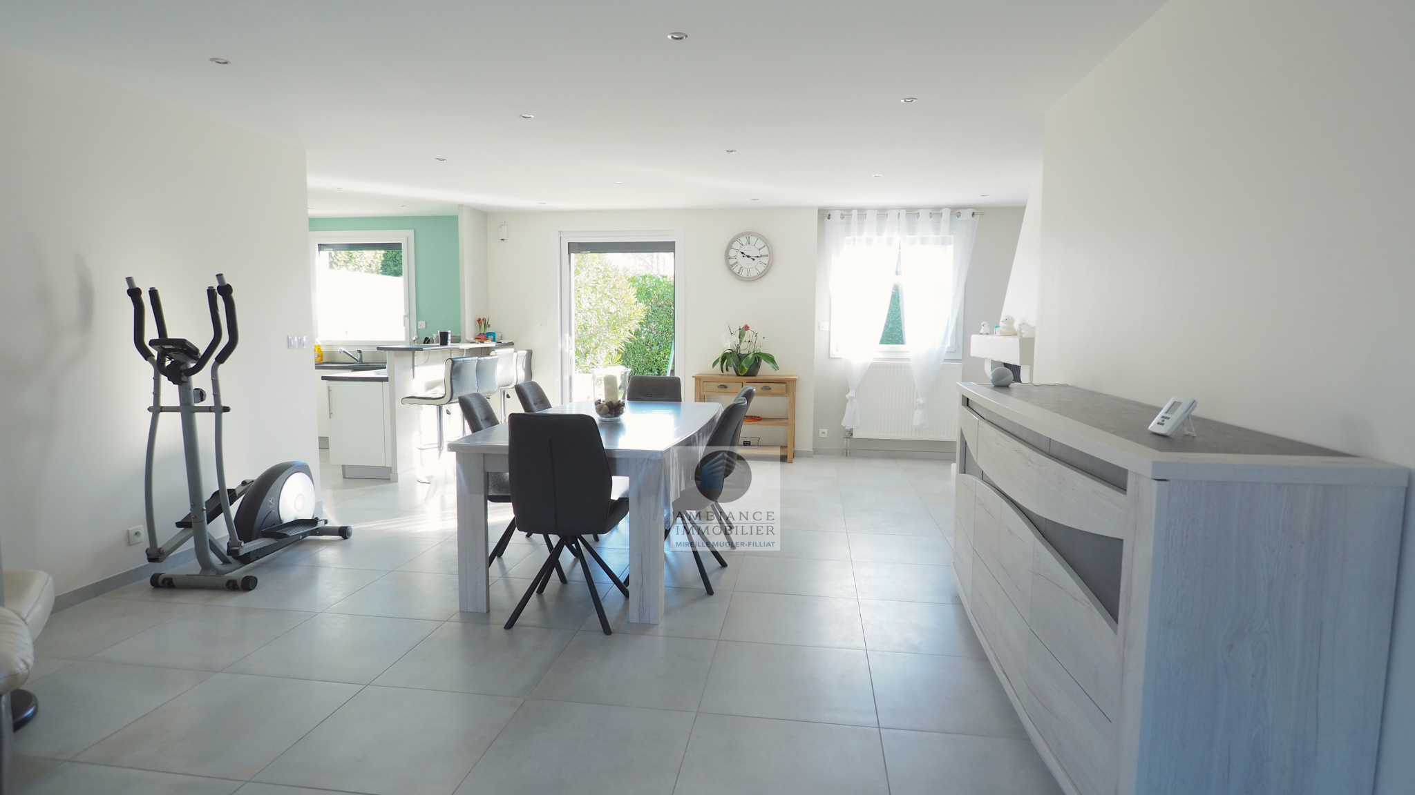 GUILHERAND-GRANGES, le centre-ville et le calme, la luminosité, un esprit contemporain, de belles prestations, une conception agréable et fonctionnelle pour cette maison de plain-pied de 105m2. Une pièce vie de 50m2 : séjour-salon avec cheminée accès à une terrasse carrelée avec store, cuisine intégrée, buanderie, un bureau, un espace nuit séparé : salle de bains avec vasque, baignoire et wc, 3 chambres dont une suite parentale de 17m2 : chambre avec 2 placards, salle d’eau avec douche, vasque et wc. Chauffage au gaz de ville – huisseries pvc et alu. Garage avec porte sectionnelle. Parcelle de 560m2 avec un jardin paysager, un chalet en bois, un jeu de boules, parkings. Un beau projet pour de jeunes retraités.