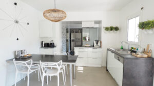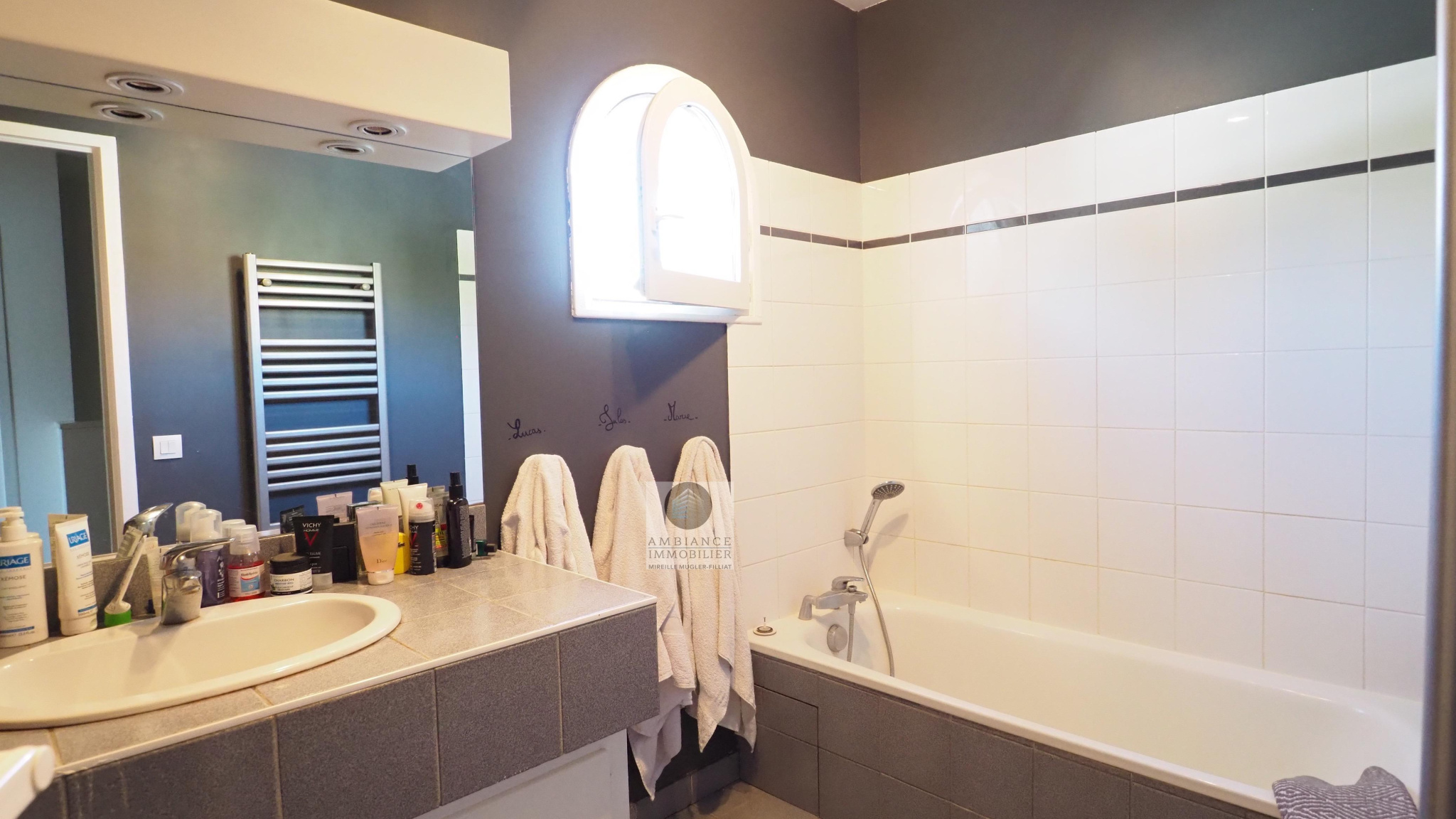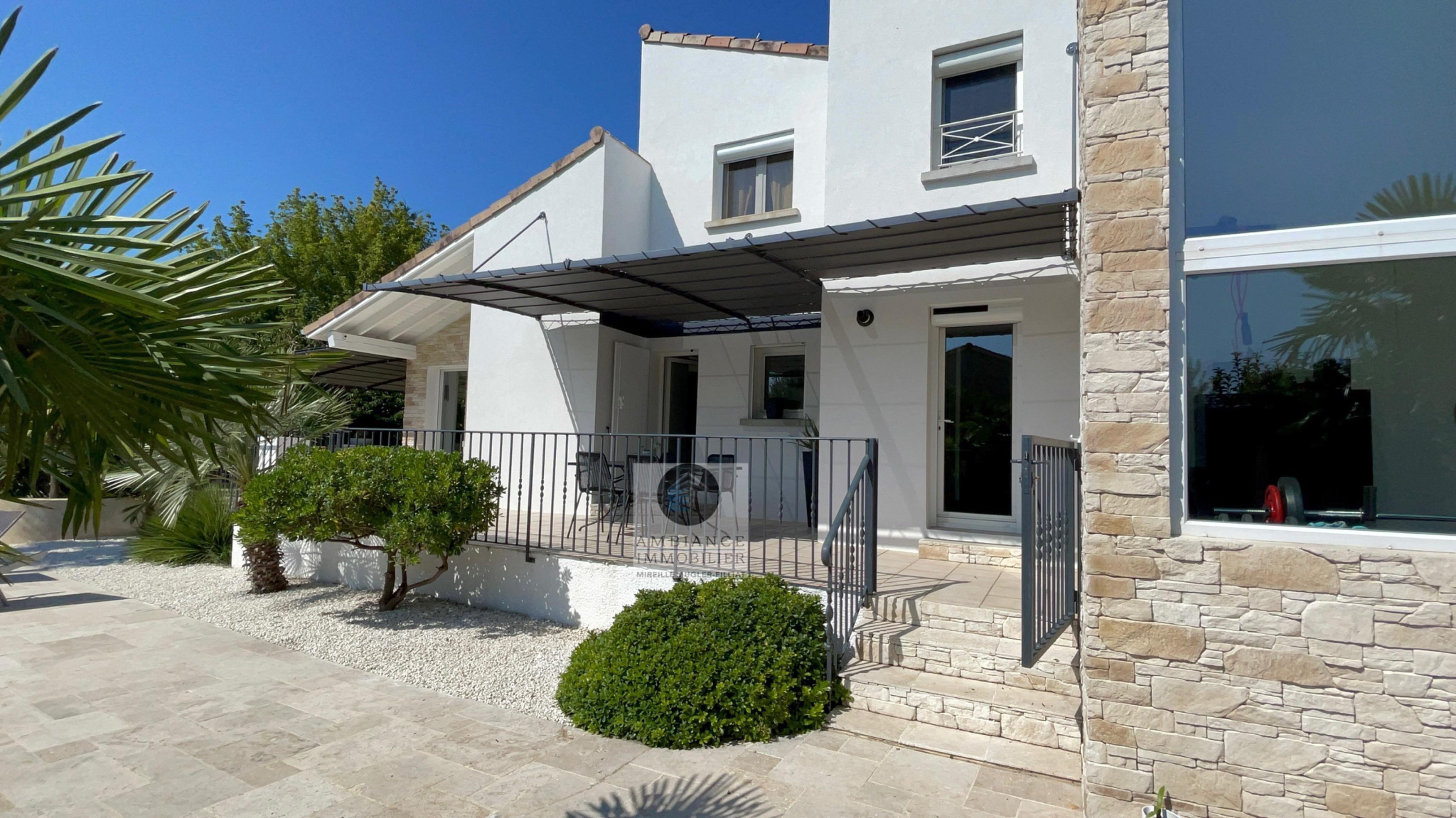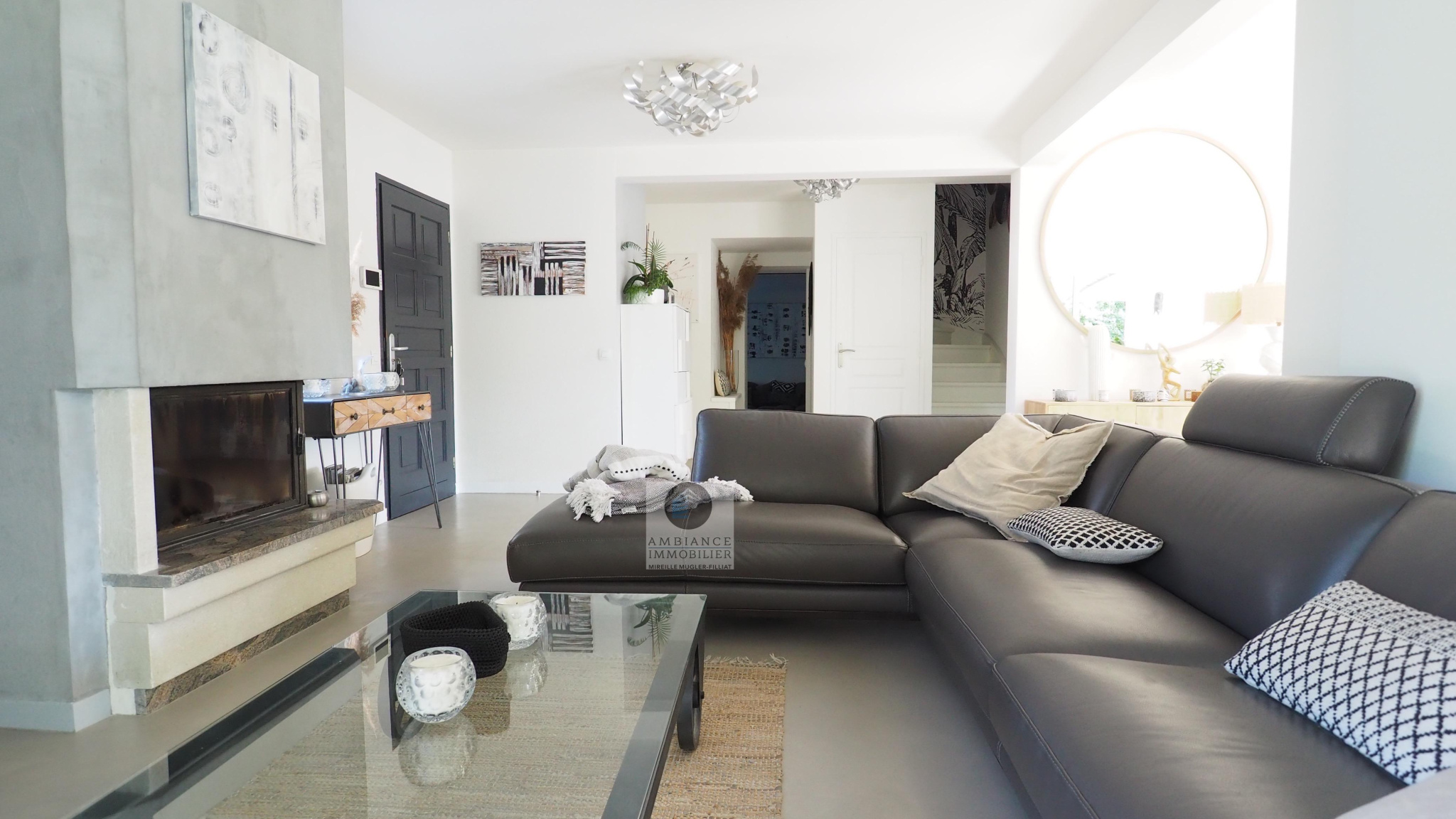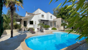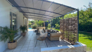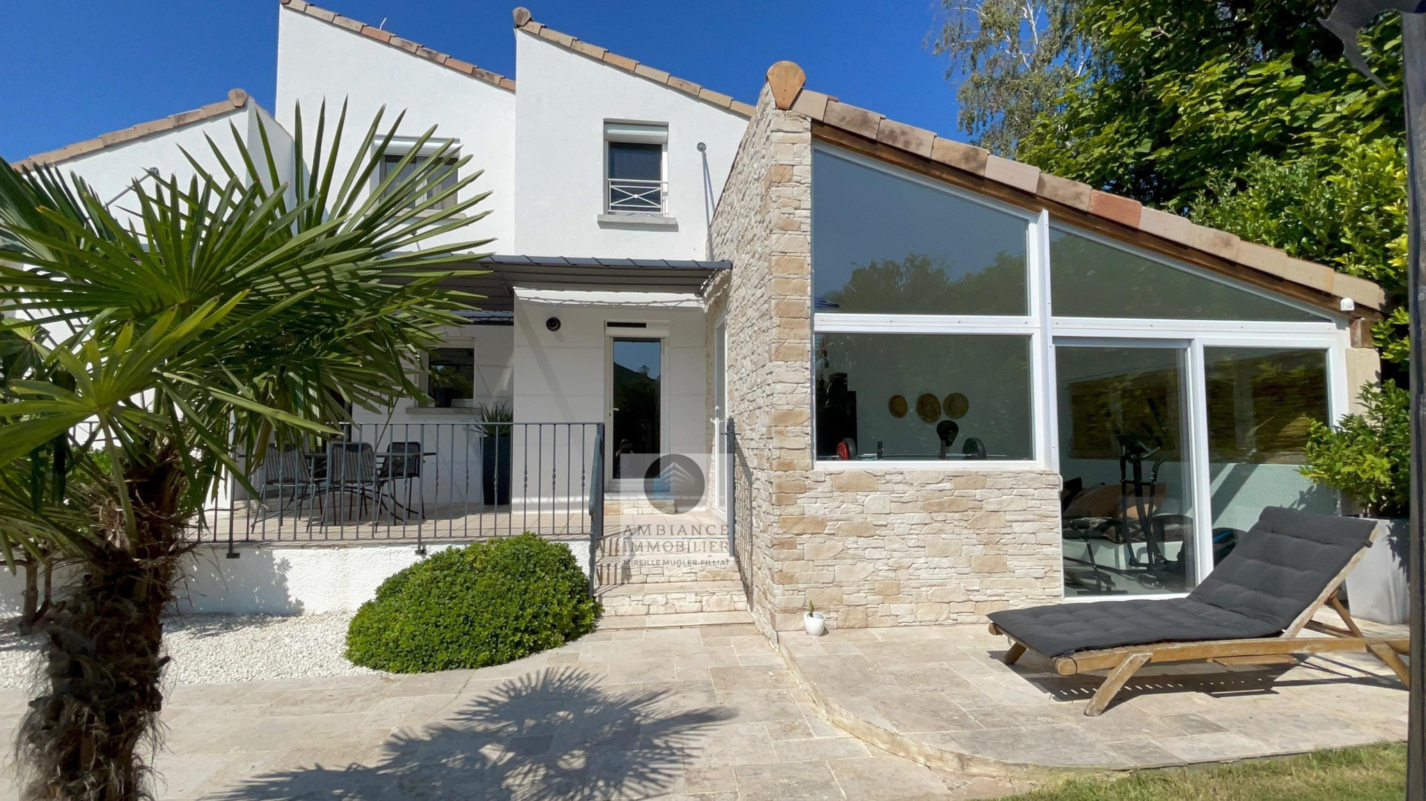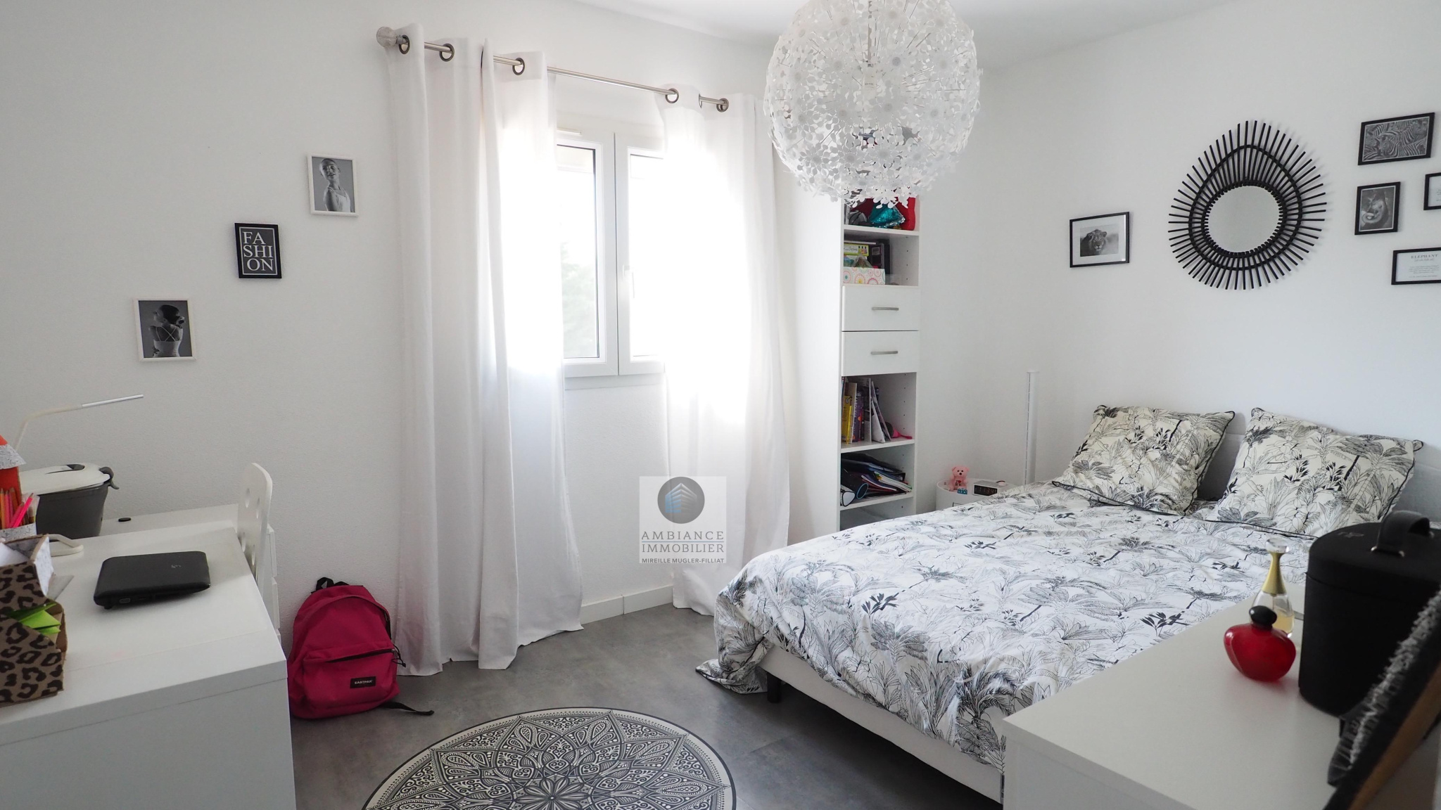 GUILHERAND-GRANGES, en exclusivité, dans quartier résidentiel, le calme, la luminosité, une belle exposition, une architecture originale, de grandes baies vitrées offrant de belles perspectives sur le jardin joliment paysager et de spacieuses terrasses avec pergolas. Un esprit contemporain et une ambiance chaleureuse pour cette maison de 206m2. Une enfilade de pièces de vie de 100m2 : salon-séjour de 55m2, salon TV de 19m2, cuisine intégrée de 26m2, 5 chambres dont 1 suite parentale au rdc de 18m2 avec salle d’eau et dressing. Au 1er étage : 4 chambres et 1 salle de bains. Salle de sport ou bureau avec accès indépendant. Chauffage au gaz par le sol et radiateurs, climatisation. Garage de 38m2,parking fermé. Terrain de 1 117m2 avec un bel espace détente autour d’une piscine sécurisée de 8m x 4m, un jardin aménagé dans un esprit sud – arrosage intégré avec l’eau du puits. Vous serez séduits par le charme et la douceur de vivre de cette maison.