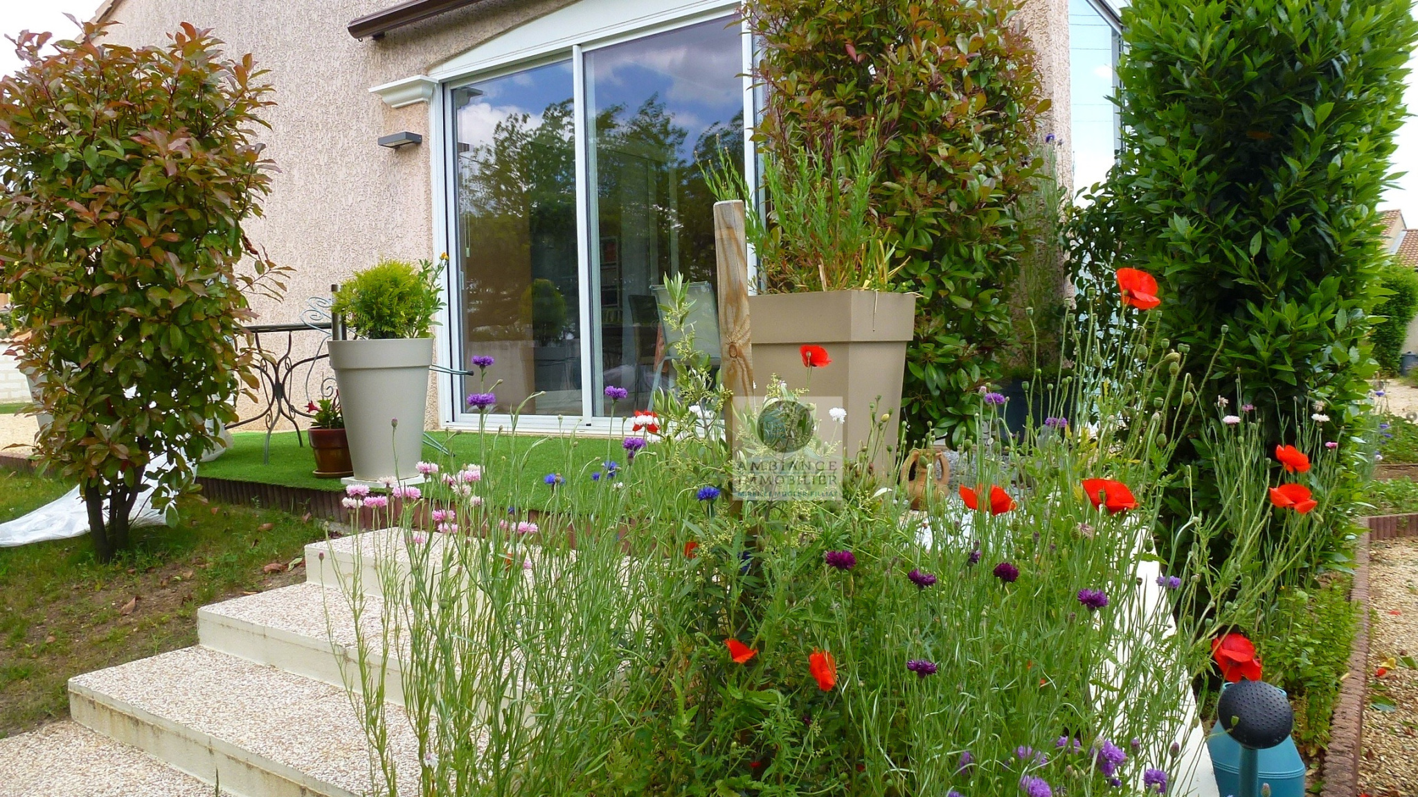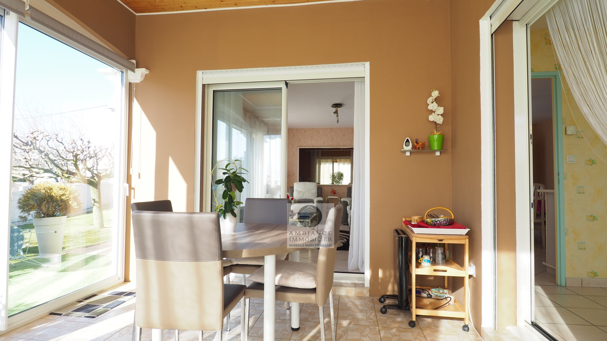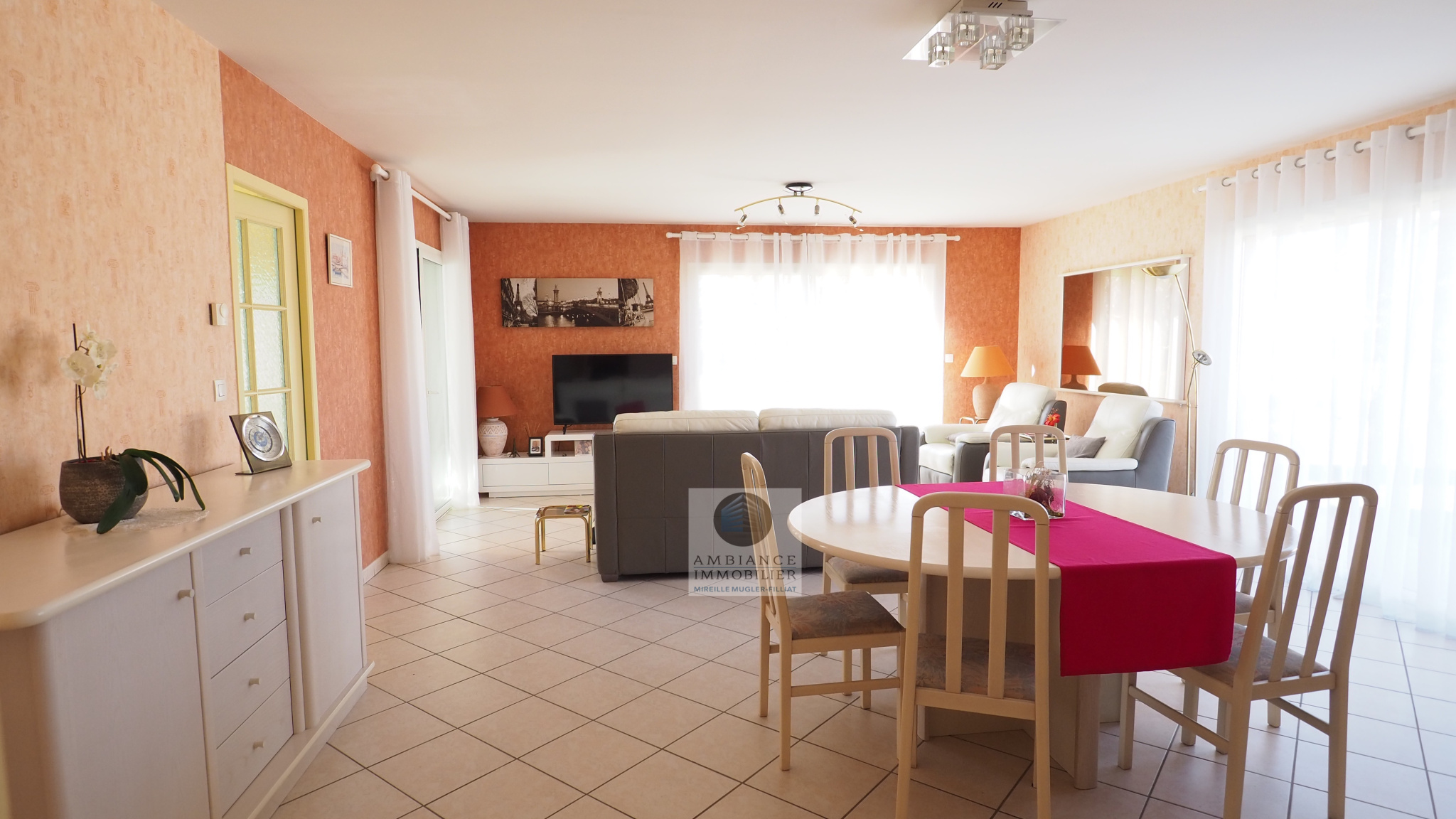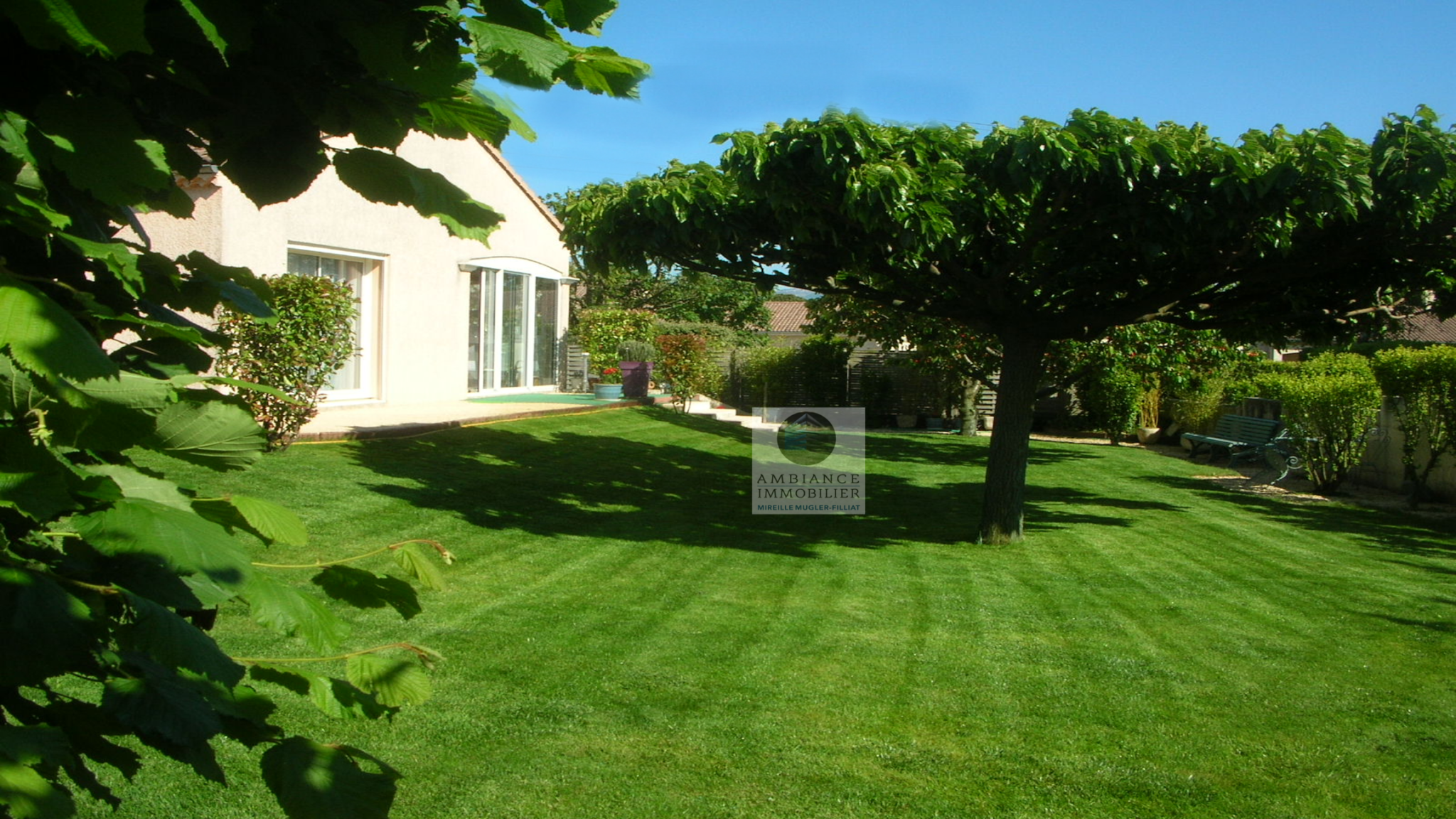VALENCE à 5mn dans le village de MALISSARD, le calme, une belle situation dans un quartier résidentiel, la luminosité, une conception agréable, de beaux volumes pour cette maison d’architecte de 144m2. Une pièce de vie de 38m2 avec de grandes baies vitrées Sud et Ouest, cuisine intégrée Mobalpa accès à une véranda de 13m2 offrant une belle perspective sur le jardin, un bureau, wc et au 1/2 étage : 4 chambres, salle de bains avec baignoire, 2 vasques et wc, possibilité de créer une 2ème salle d’eau. Un sous-sol de 63m2 avec buanderie, chaufferie et grand garage. Chauffage par le sol, chaudière à condensation de 2017, huisseries pvc et alu, adoucisseur. Une parcelle de 941m2 avec un espace parking et un beau jardin paysager, eau de la Bourne pour l’arrosage.