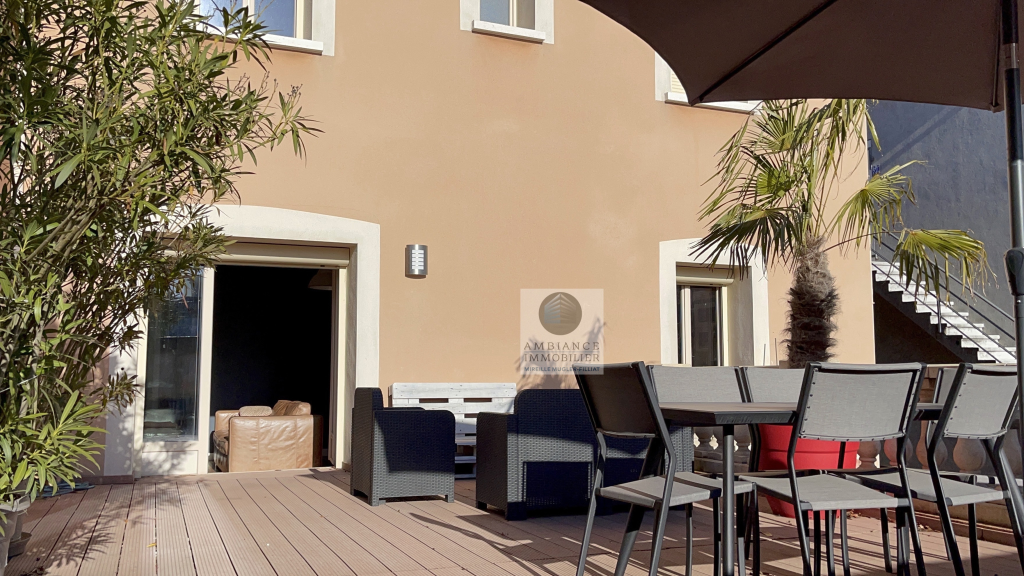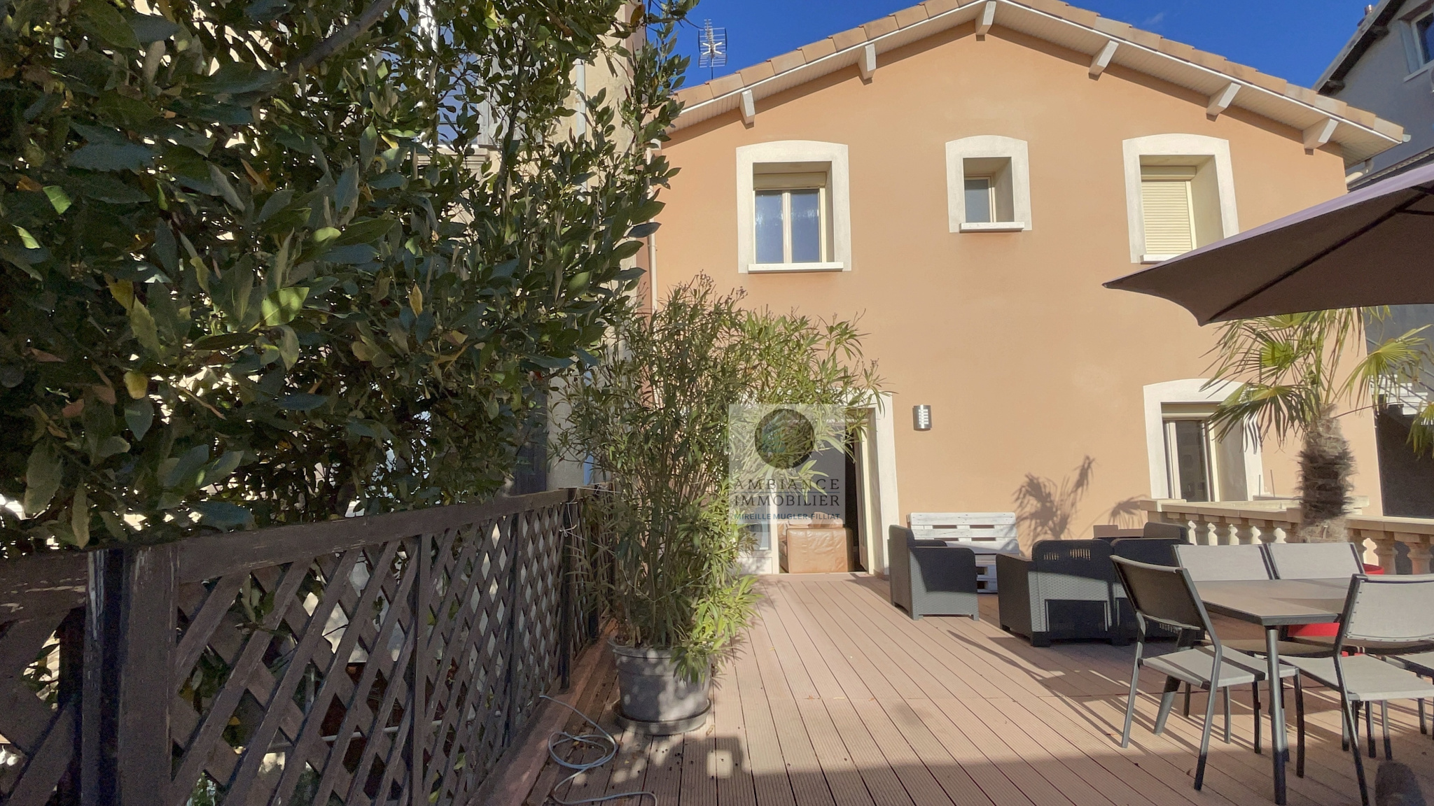VALENCE proche du Centre-ville dans quartier recherché, en exclusivité, le charme de l’ancien, de beaux volumes et une ambiance chaleureuse pour cette maison de ville de 155m2 entièrement rénovée en 2014. Hall d’entrée avec bel escalier en bois, salon-séjour avec accès à une terrasse de 48m2 exposée Sud, cuisine intégrée, salle à manger ou chambre d’amis, salle de bains avec baignoire et vasque. Au 1er étage, une mezzanine : bureau/salon lecture de 15m2, 3 chambres et une salle d’eau. Un entresol : salle de jeux/home cinéma de 24m2, une buanderie/cellier et une pièce avec un accès direct à la cour offrant la possibilité d’une activité professionnelle. Chauffage au gaz – huisseries bois double vitrage et volets roulants. 3 garages fermés.