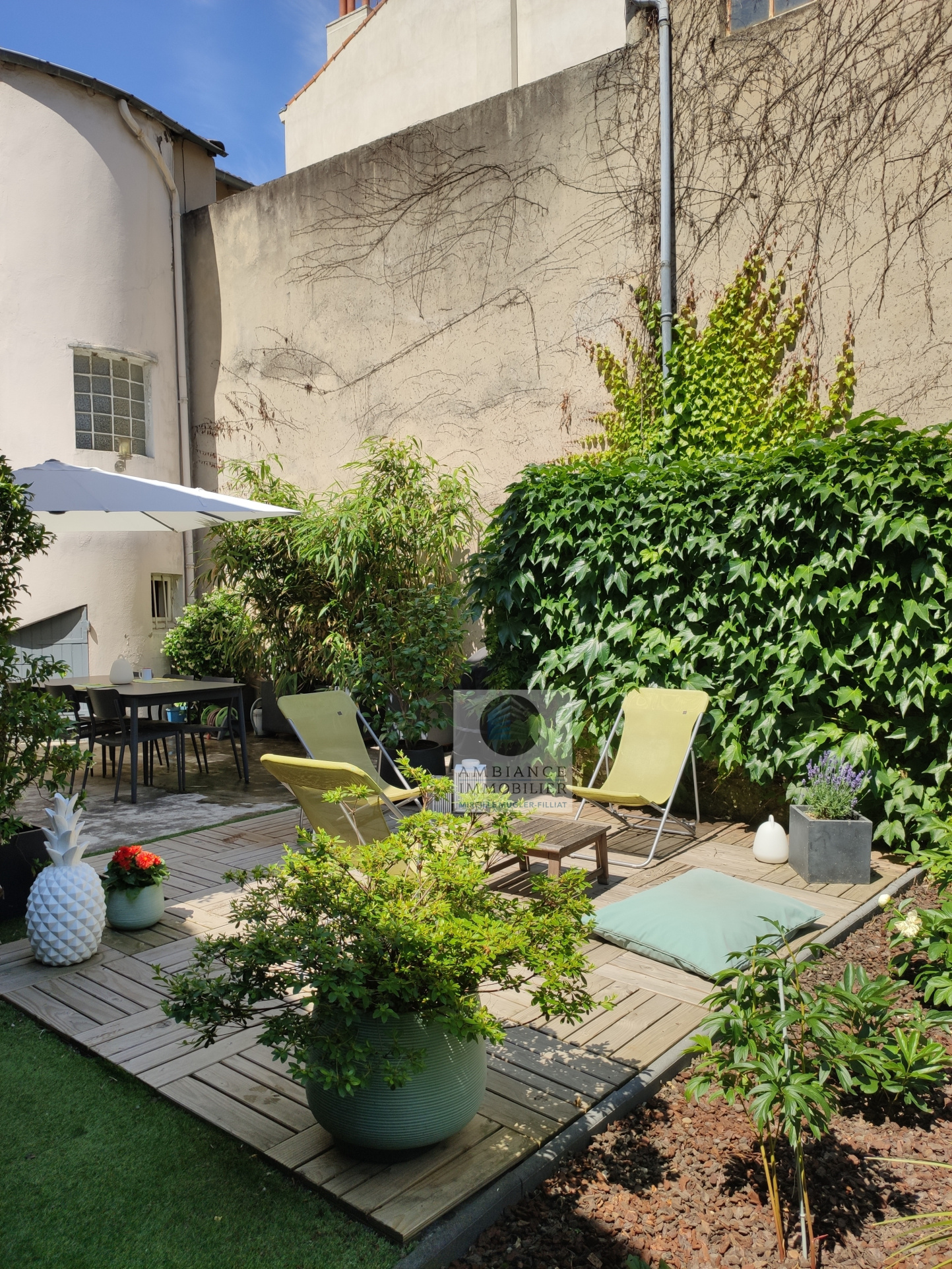 VALENCE dans quartier résidentiel au Centre-ville, la luminosité, de beaux espaces, une conception agréable pour cette maison de ville. Une rénovation par un architecte en 2009 et 2015 dans un esprit contemporain. Une pièce de vie : salon-séjour-cuisine intégrée de 33m2 avec accès au jardin paysager et à une terrasse de 60m2 offrant la possibilité de créer une véranda. Au 1er étage : 2 chambres, salle de bains avec baignoire et 2 vasques, un espace buanderie. Au 2ème étage : une suite parentale de 23m2 avec dressing, douche et vasque, une ambiance très cocooning avec les poutres apparentes. Chauffage au gaz et climatisation réversible, huisseries pvc, excellente isolation. Cave de 40m2 et une dépendance de 20m2. Parcelle de terrain de 273m2. Location parking sécurisé.