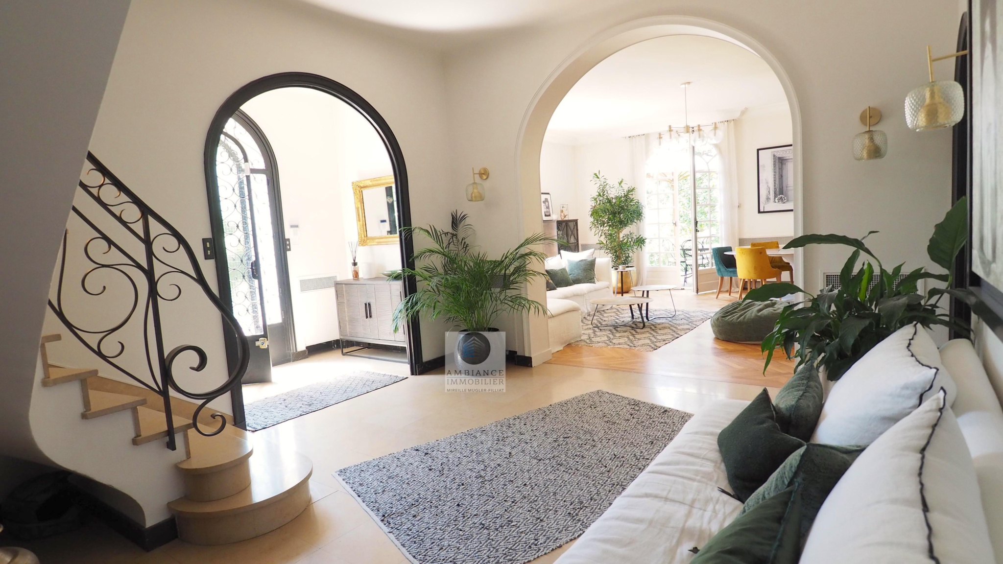 VALENCE dans quartier recherché, le calme, la proximité des commerces, une belle exposition, la luminosité et une architecture originale pour cette maison de 236m2 rénovée dans un esprit contemporain et chaleureux tout en conservant l’authenticité des lieux : marbre, ferronnerie, parquet… une enfilade de pièces de vie : Hall d’entrée/salon de 18m2 avec un escalier majestueux, salon-séjour de 34m2 avec cheminée à foyer fermé, cuisine dînatoire de 22m2, 3 chambres, salle d’eau avec douche à l’italienne et 2 vasques. Au 1er étage : un espace dédié aux enfants avec une superbe charpente apparente : salon lecture/jeux de 23m2, 2 chambres de 21m2 et 30m2, salle de bains avec vasque et baignoire. Combles de 46m2 pouvant être aménagées. A l’entresol : une chambre d’amis ou bureau, buanderie, chaufferie, 1 salle de sport/jeux de 55m2 et une salle de jeux de 28m2, cave, chaufferie. Garage de 35m2, parkings. Alarme. Climatisation. Une parcelle de 1 982m2 avec une partie paysager avec de grands arbres et 700m2 en gazon, emplacement idéal pour une piscine ou construction de maison.